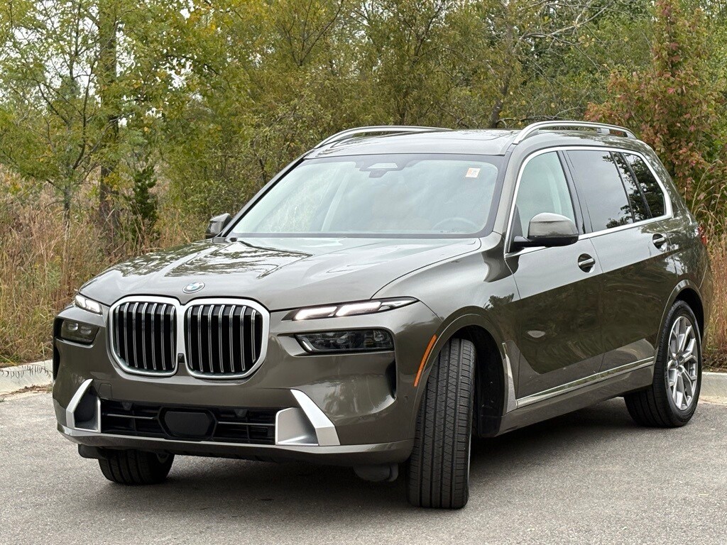 2023 BMW X7 xDrive40i ONE OWNER, LOCAL TRADE, 3RD ROW SEAT, ACTIVE BLIND SPOT DETECTION, APPLE CARPLAY COMPATIBILITY, HARMAN KARDON SURROUND SOUND, COMFORT ACCESS, DRIVER ASSISTANCE PACKAGE, EXECUTIVE PACKAGE, POWER SEATS, AMBIENT LIGHTING, MULTI-CONTOUR SEATS, FRONT VENTILATED SEATS, HEATED FRONT SEATS, HEATED REAR SEATS, HEATED STEERING WHEEL, HEAD-UP DISPLAY, NAVIGATION, PANORAMIC MOONROOF, REAR CAMERA, PARKING ASSISTANT, REMOTE ENGINE START, GLASS CONTROLS, POWER LIFTGATE, 5-Zone Automatic Climate Control, Active Driving Assistant Pro, Adaptive suspension, Apple CarPlay & Android Auto Compatibility, APPLE CARPLAY COMPATIBILITY, Auto tilt-away steering wheel, Brake assist, Climate Comfort Package, Compass, Connected Package Pro, Delay-off headlights, Drive Recorder, Driving Assistance Professional Package, Emergency communication system: BMW Assist eCall, Executive Package (DISC), Four wheel independent suspension, Front & Rear Heated Seats, Front Massaging Seats, Front reading lights, Front Ventilated Seats, Genuine wood console insert, Gesture Control, Glass Controls, Harman/Kardon Surround Sound System, Head restraints memory, Heads-Up Display, Heated & Cooled Cup Holders, Low tire pressure warning, Panoramic Sky Lounge LED Roof, PARK DISTANCE CONTROL, Parking Assistant Professional, Power passenger seat, Rear anti-roll bar, Rear Electric Side Window Shades, Rear window defroster, Soft-Close Automatic Doors, Split folding rear seat, Steering wheel memory, Surround View w/3D View. Manhattan Green Metallic 8-Speed Automatic Sport AWD 3.0L I6 DOHC 24V