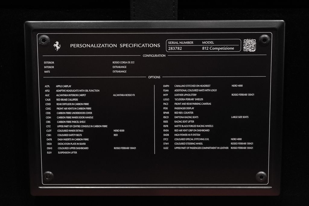 The Certified Pre Owned Coverage is Included in our Asking Price. For more information on this Ferrari 812 Competizione call one of our Ferrari Specialists today at 847.295.6560