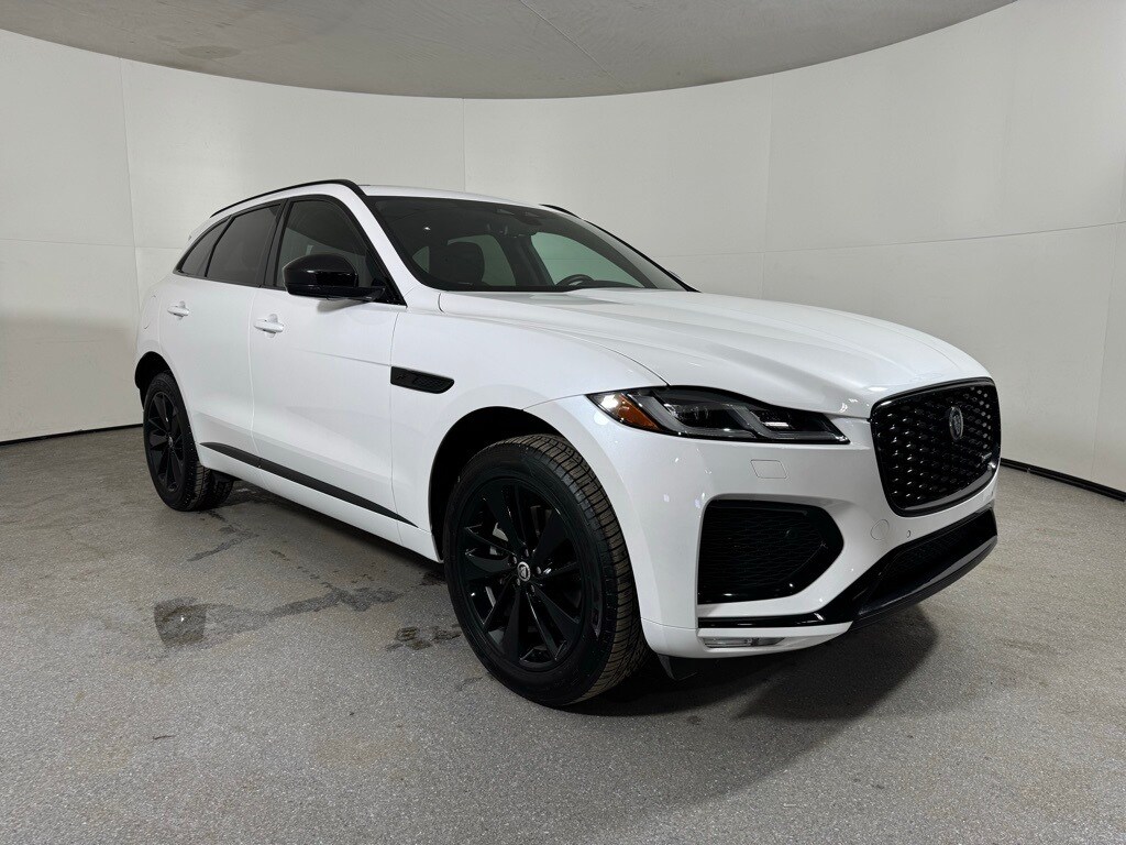 Recent Arrival! 20" Wheels, Auto High-beam Headlights, Brake assist, Electronic Stability Control, Exterior Parking Camera Rear, Front Fog Lights, Fully automatic headlights, Garage door transmitter: HomeLink, Gloss Black Roof Rails, Heated Rear Seats w/Center Armrest, Heated steering wheel, Illuminated entry, Interactive Driver Display, Leather steering wheel, Navigation system: Pivi Pro (Connected Navigation), Outside temperature display, Panic alarm, Power Liftgate, Power moonroof, Radio: Meridian 400W Sound System, Rain sensing wipers, Rear fog lights, Security system, Traction control, Turn signal indicator mirrors, Wheels: 20" Gloss Black (Style 1067). 2025 Jaguar F-PACE P250 R-Dynamic S Ostuni Pearl White Metallic