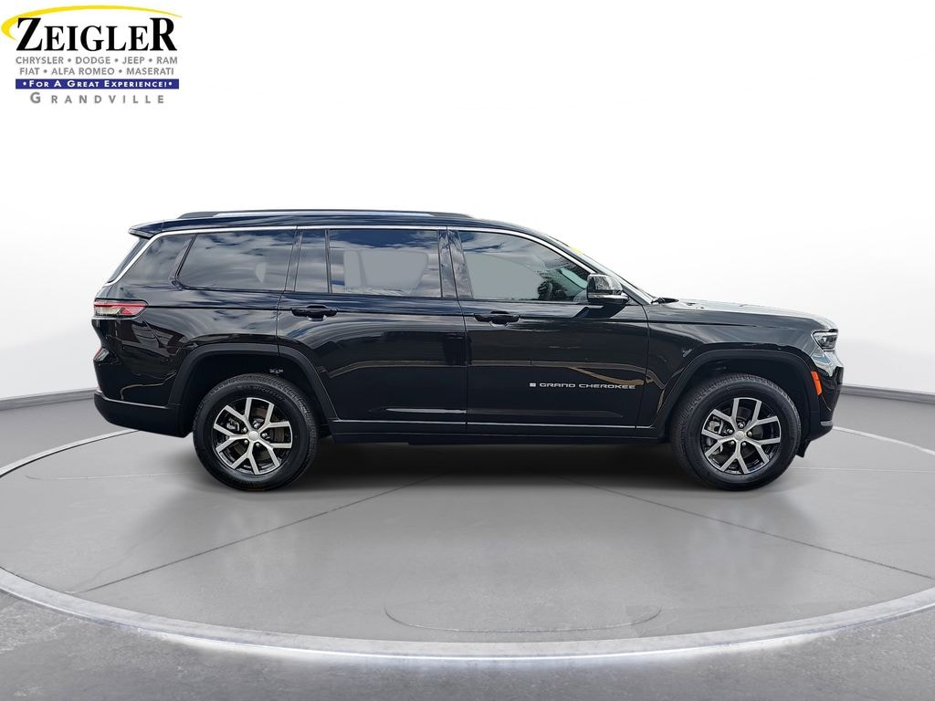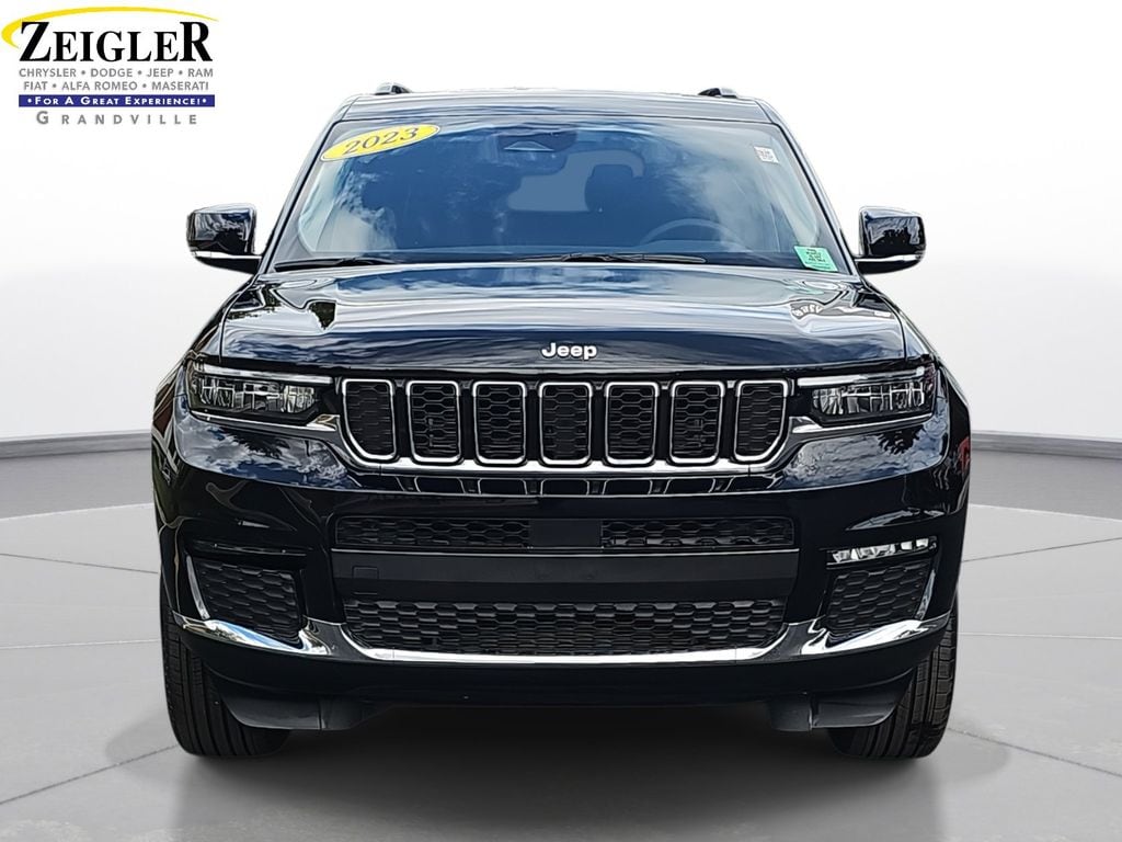 Certified. 2023 Jeep Grand Cherokee L Limited Diamond Black Crystal Pearlcoat 3.45 Rear Axle Ratio, 3rd row seats: split-bench, 4-Wheel Disc Brakes, 6 Speakers, ABS brakes, Active Noise Control System, Air Conditioning, Alloy wheels, AM/FM radio: SiriusXM with 360L, Anti-whiplash front head restraints, Audio memory, Auto High-beam Headlights, Automatic temperature control, Brake assist, Bumpers: body-color, Capri Leatherette Seats, Compass, Delay-off headlights, Driver door bin, Driver vanity mirror, Dual front impact airbags, Dual front side impact airbags, Electronic Stability Control, Emergency communication system, Four wheel independent suspension, Front anti-roll bar, Front Bucket Seats, Front Center Armrest w/Storage, Front dual zone A/C, Front fog lights, Front reading lights, Fully automatic headlights, Garage door transmitter, Heated door mirrors, Heated front seats, Heated rear seats, Heated steering wheel, Illuminated entry, Knee airbag, Low tire pressure warning, Manual Fold Seatbacks, Memory seat, Molded In Color Black/Gloss Black Roof Rails, Navigation System, Normal Duty Suspension, Occupant sensing airbag, Outside temperature display, Overhead airbag, Overhead console, Panic alarm, ParkView Rear Back-Up Camera, Passenger door bin, Passenger vanity mirror, Power door mirrors, Power driver seat, Power Liftgate, Power passenger seat, Power steering, Power windows, Quick Order Package 23E, Radio data system, Radio: Uconnect 5 Nav w/10.1" Display, Rear air conditioning, Rear anti-roll bar, Rear reading lights, Rear window defroster, Rear window wiper, Reclining 3rd row seat, Remote keyless entry, Security system, Speed control, Speed-Sensitive Wipers, Split folding rear seat, Spoiler, Steering wheel mounted audio controls, Tachometer, Telescoping steering wheel, Tilt steering wheel, Traction control, Trip computer, Turn signal indicator mirrors, Variably intermittent wipers, Voltmeter, Wheels: 18" x 8.0" Fully Painted Aluminum, Wheels: 18" x 8.0" Polished/Painted Aluminum.