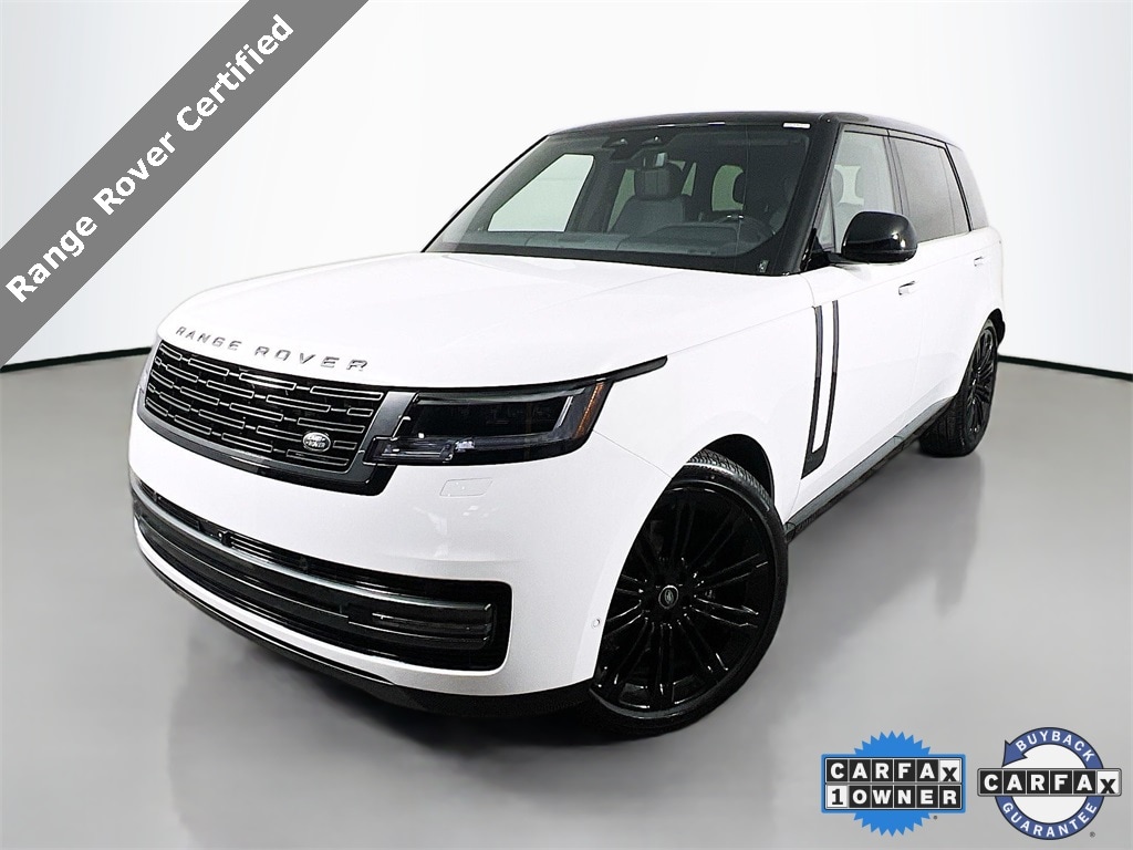 This exceptional pre-owned 2025 Range Rover, boasting a mere 6,413 miles. This luxury SUV makes a stunning visual statement with its pristine Fuji White exterior complemented by a sophisticated Ebony Leather interior. Further enhancing its assertive elegance are numerous added options, including striking Black Brake Calipers, a Black Contrast Roof, the stealth-like Shadow Exterior Package, rich Gloss Black Veneer interior trim, and powerful 23-Inch Black Wheels, creating a truly bespoke and contemporary look.