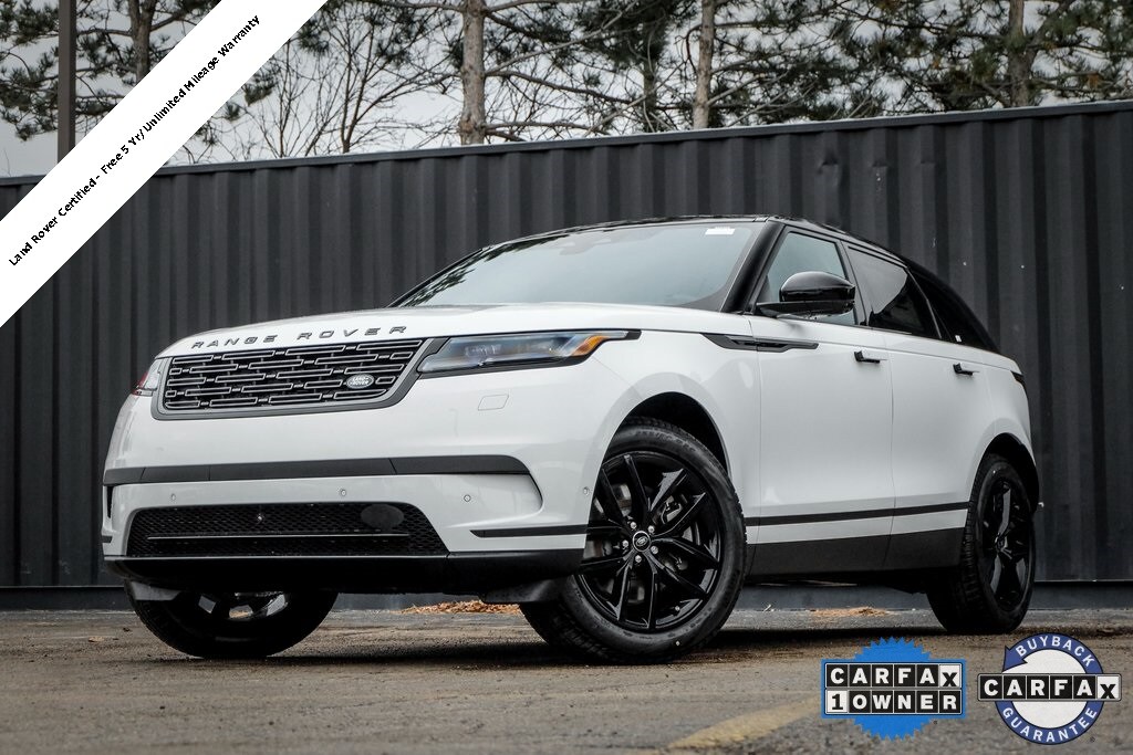 Land Rover Certified! Free 5 Year from new/Unlimited Mileage Warranty! 12 Speakers, 14-Way Heated Front Seats w/Driver Memory, 20" Wheels, AM/FM radio: SiriusXM, Apple CarPlay & Android Auto, Auto High-beam Headlights, Auto-dimming door mirrors, Black Contrast Roof, Brake assist, Cold Climate Pack, Delay-off headlights, Electronic Stability Control, Exterior Parking Camera Rear, Fully automatic headlights, Headlight Power Wash, Heated & Cooled Front Seats, Heated Rear Seats, Heated steering wheel, Heated Washer Jets, Heated Windscreen, Leather steering wheel, Memory seat, Navigation system: Pivi Pro, Panic alarm, Power driver seat, Power Liftgate, Power moonroof, Premium Interior Protection & Storage Pack, Radio data system, Radio: Meridian Sound System, Rain sensing wipers, Rear fog lights, Rear window wiper, Security system, Shadow Gray Ash Veneer, Sirius XM Satellite Radio & HD Radio, Speed control, Spoiler, Turn signal indicator mirrors, Wheels: 20" 10 Spoke Gloss Black (Style 1089). 2026 Land Rover Range Rover Velar S Fuji White