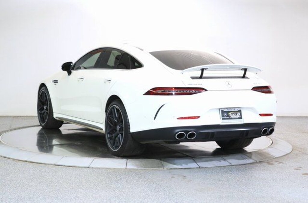 Acoustic Comfort Package, Active Brake Assist w/Cross-Traffic Function, Active Distance Assist DISTRONIC®, Active Emergency Stop Assist, Active Lane Change Assist, Active Lane Keeping Assist, Active Speed Limit Assist, Active Steering Assist, Air Balance Package, AMG® Exterior Carbon Fiber Package 1, Blind Spot Assist, Driver Assistance Package (23P), Evasive Steering Assist, Exclusive Nappa Leather Upholstery, Head-Up Display w/AMG® Specific Content, Heated & Ventilated Front Seats, Infrared Glass, Manual Rear Window Sunshade, MANUFAKTUR Black Microfiber Headliner, PRE-SAFE® PLUS Rear-End Collision Protection, Route-Based Speed Adaptation, Soft-Close Doors, Wheel Locking Bolts, Wheels: 10" x 21" Fr/11.5" x 21" Rr AMG® Forged. 2023 Mercedes-Benz AMG® GT 53 Base 4MATIC® 4MATIC® MANUFAKTUR Diamond White Metallic 4MATIC® 9-Speed Automatic I6