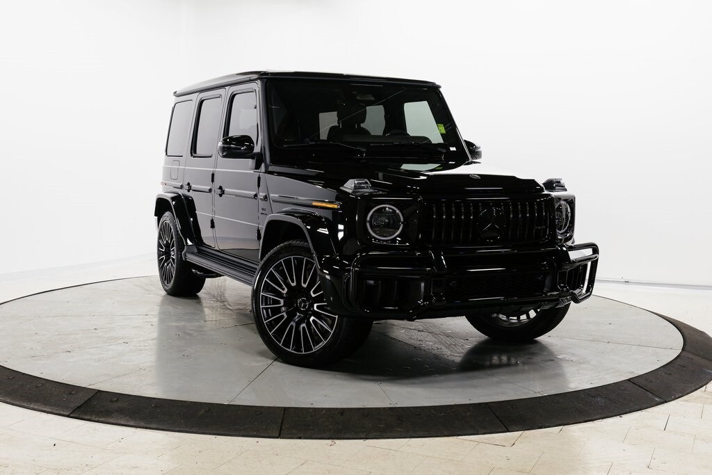 AMG® Carbon Fiber/Microfiber Steering Wheel, AMG® Night Package (P56), AMG® Night Package Plus, AMG® Specific Exhaust System in Black, Brush Guard in Black, Drive-Dynamic Multicontour Front Seats w/Massage, ENERGIZING Package Plus, Exclusive Interior Package Plus, Exclusive Nappa Leather Trim, Exterior Lettering in Black, Exterior Mirrors Painted in Obsidian Black, Front Ventilated Seats, Leather Grab Handles, MANUFAKTUR Black Running Boards, MANUFAKTUR Interior Package Plus (P77), MANUFAKTUR Logo Package, Mercedes-Benz Star in Black, Rapid Heating Front Seats, Seat Comfort Package, Spare Wheel Cover in Obsidian Black, Underguard in Obsidian Black, Wheel Arches & Bumpers in Black, Wheel Locking Bolts, Wheels: 22" AMG® Black Multi-Spoke Forged. 2025 Mercedes-Benz G-Class G 63 AMG® 4MATIC® 4MATIC® Obsidian Black Metallic 4MATIC® 9-Speed Automatic V8