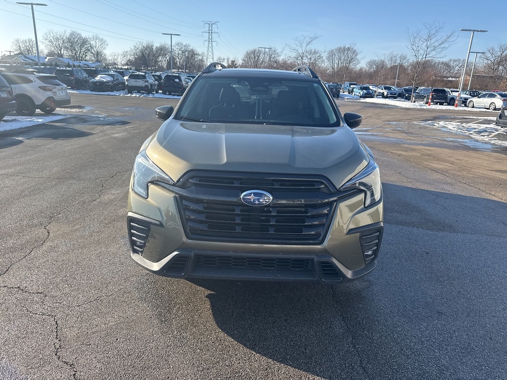 Recent Arrival! 2024 Subaru Certified. Autumn Green Metallic AWD Ascent Onyx Edition Lineartronic CVT Odometer is 10807 miles below market average! 3rd row seats: bench, 4-Wheel Disc Brakes, 6 Speakers, ABS brakes, Air Conditioning, Alloy wheels, AM/FM radio: SiriusXM, Auto High-beam Headlights, Auto-dimming Rear-View mirror, Automatic temperature control, Axle Ratio: 4.44, Brake assist, Bumpers: body-color, Compass, Delay-off headlights, Driver door bin, Driver vanity mirror, Dual front impact airbags, Dual front side impact airbags, Electronic Stability Control, Emergency communication system: STARLINK Safety and Security (Subscription Required), Exterior Parking Camera Rear, Four wheel independent suspension, Front anti-roll bar, Front Bucket Seats, Front Center Armrest, Front dual zone A/C, Front fog lights, Front reading lights, Fully automatic headlights, Garage door transmitter: HomeLink, Heated door mirrors, Heated Front Bucket Seats, Heated front seats, Heated steering wheel, Illuminated entry, Knee airbag, Leather Shift Knob, Leather steering wheel, Low tire pressure warning, Occupant sensing airbag, Outside temperature display, Overhead airbag, Overhead console, Panic alarm, Passenger door bin, Passenger vanity mirror, Power door mirrors, Power driver seat, Power Liftgate, Power moonroof, Power steering, Power windows, Radio data system, Radio: Subaru STARLINK 11.6" Multimedia Plus System, Rear air conditioning, Rear anti-roll bar, Rear reading lights, Rear window defroster, Rear window wiper, Reclining 3rd row seat, Remote keyless entry, Security system, Speed control, Speed-sensing steering, Split folding rear seat, Spoiler, STARLINK/Apple CarPlay/Android Auto, StarTex Upholstery, Steering wheel mounted audio controls, Tachometer, Telescoping steering wheel, Tilt steering wheel, Traction control, Trip computer, Turn signal indicator mirrors, Variably intermittent wipers, and Wheels: 20" x 7.5 J Aluminum Alloy w/Black Finish.