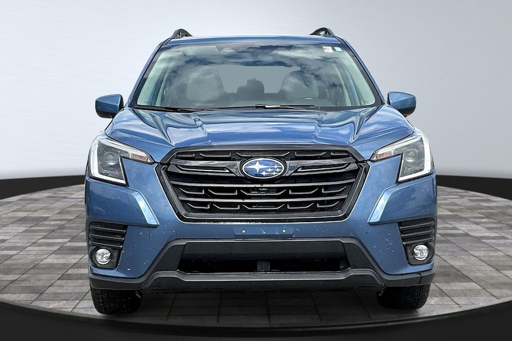2024 Subaru Horizon Blue Pearl AWD Forester Premium Lineartronic CVT 3.70 Axle Ratio, 4-Wheel Disc Brakes, 6 Speakers, ABS brakes, Air Conditioning, Alloy wheels, AM/FM radio: SiriusXM, Anti-whiplash front head restraints, Auto High-beam Headlights, Automatic temperature control, Brake assist, Bumpers: body-color, Driver door bin, Driver vanity mirror, Dual front impact airbags, Dual front side impact airbags, Electronic Stability Control, Emergency communication system: STARLINK Safety and Security (Subscription Required), Exterior Parking Camera Rear, Four wheel independent suspension, Front anti-roll bar, Front Bucket Seats, Front Center Armrest, Front fog lights, Front reading lights, Fully automatic headlights, Heated door mirrors, Heated Front Bucket Seats, Heated front seats, Illuminated entry, Knee airbag, Leather steering wheel, Low tire pressure warning, Occupant sensing airbag, Outside temperature display, Overhead airbag, Overhead console, Panic alarm, Passenger door bin, Passenger vanity mirror, Power door mirrors, Power driver seat, Power moonroof: Panoramic, Power steering, Power windows, Premium Cloth Upholstery, Radio data system, Radio: Subaru STARLINK 6.5" Multimedia Plus System, Rear anti-roll bar, Rear seat center armrest, Rear window defroster, Rear window wiper, Remote keyless entry, Roof rack: rails only, Security system, Speed control, Speed-sensing steering, Split folding rear seat, Spoiler, STARLINK/Apple CarPlay/Android Auto, Steering wheel mounted audio controls, Tachometer, Telescoping steering wheel, Tilt steering wheel, Traction control, Trip computer, Variably intermittent wipers, and Wheels: 17" x 7.0 J Black Machine Finish Alloy.