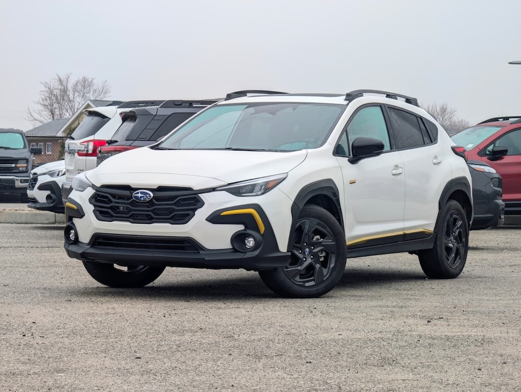 Recent Arrival! 2025 Subaru Certified. Crystal White Pearl AWD Crosstrek Sport Lineartronic CVT Odometer is 1909 miles below market average! BSD/RCTA & Power Driver Seat & Power Moonroof (10-Way Power Driver's Seat, Blind Spot Detection (BSD), Power Moonroof, and Rear Cross-Traffic Alert (RCTA) System), 4-Wheel Disc Brakes, 6 Speakers, ABS brakes, Air Conditioning, All-Weather Floor Liners, Alloy wheels, AM/FM radio: SiriusXM, Anti-whiplash front head restraints, Auto High-beam Headlights, Auto-Dimming Mirror w/Compass & HomeLink, Automatic temperature control, Brake assist, Bumpers: body-color, Cargo Net, Driver door bin, Driver vanity mirror, Dual front impact airbags, Dual front side impact airbags, Electronic Stability Control, Emergency communication system, Exterior Parking Camera Rear, Four wheel independent suspension, Front anti-roll bar, Front Bucket Seats, Front Center Armrest, Front dual zone A/C, Front fog lights, Front reading lights, Fully automatic headlights, Heated door mirrors, Heated Front Bucket Seats, Heated front seats, Illuminated entry, Knee airbag, Leather Shift Knob, Leather steering wheel, LED Upgrade, Low tire pressure warning, Occupant sensing airbag, Outside temperature display, Overhead airbag, Overhead console, Panic alarm, Passenger door bin, Passenger vanity mirror, Power door mirrors, Power steering, Power windows, Radio data system, Radio: Subaru 11.6" Multimedia Plus System, Rear anti-roll bar, Rear Bumper Cover, Rear seat center armrest, Rear Seatback Protector, Rear window defroster, Rear window wiper, Remote keyless entry, Security system, Speed control, Speed-sensing steering, Split folding rear seat, Spoiler, Sport Cloth Upholstery, Steering wheel mounted audio controls, Tachometer, Telescoping steering wheel, Tilt steering wheel, Traction control, Trip computer, Turn signal indicator mirrors, Variably intermittent wipers, and Wheels: 18" x 7.0" J Dark Gray Aluminum-Alloy.