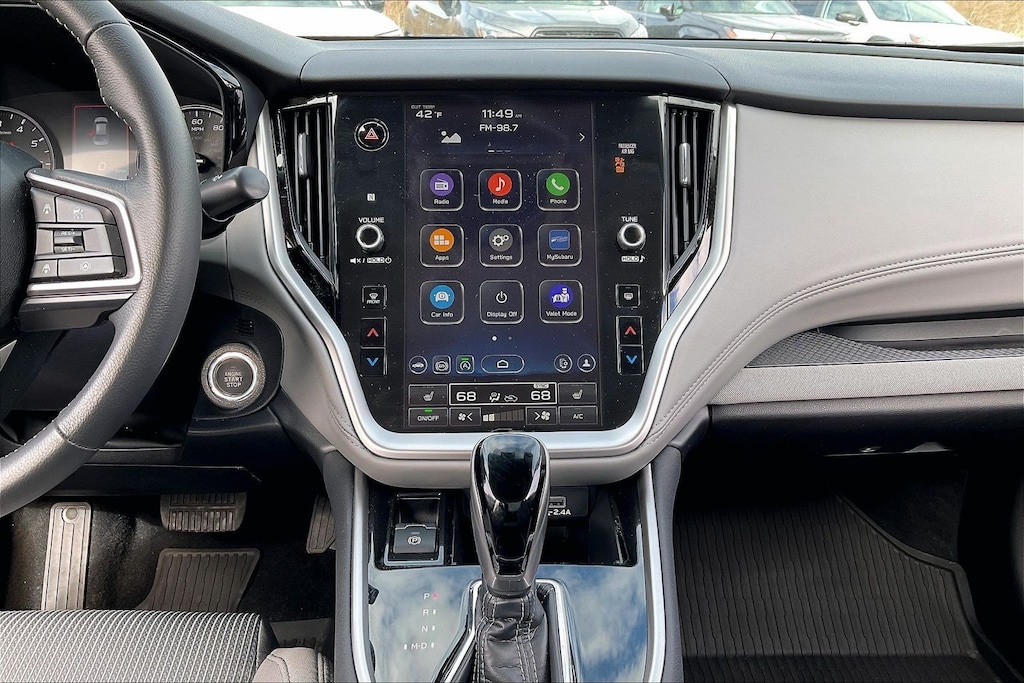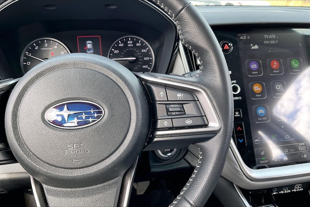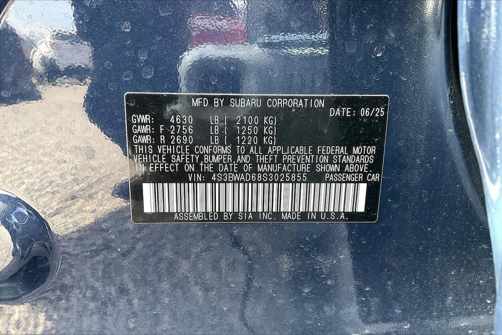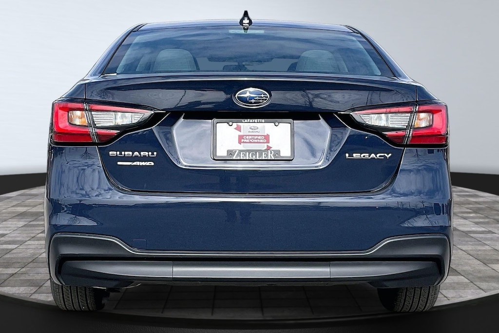 2025 Subaru Certified. Cosmic Blue Pearl AWD Legacy Premium Lineartronic CVT Odometer is 2635 miles below market average! BSD w/RCTA & Keyless Access & LED Fog Lights (Blind Spot Detection w/Rear Cross-Traffic Alert, Keyless Access w/Push Button Start, and LED Fog Lights), 4-Wheel Disc Brakes, 6 Speakers, ABS brakes, Air Conditioning, All-Weather Floor Liners, Alloy wheels, AM/FM radio: SiriusXM with 360L, Anti-whiplash front head restraints, Apple CarPlay & Android Auto, Auto High-beam Headlights, Automatic temperature control, Brake assist, Bumpers: body-color, Cargo Tray, Cloth Upholstery, Driver door bin, Driver vanity mirror, Dual front impact airbags, Dual front side impact airbags, Electronic Stability Control, Emergency communication system: MySubaru Safety Plus (3-year free trial included), Exterior Parking Camera Rear, Four wheel independent suspension, Front anti-roll bar, Front Bucket Seats, Front Center Armrest w/Storage, Front dual zone A/C, Front reading lights, Fully automatic headlights, Heated door mirrors, Heated Front Bucket Seats, Heated front seats, Illuminated entry, Knee airbag, Leather steering wheel, Low tire pressure warning, Occupant sensing airbag, Outside temperature display, Overhead airbag, Overhead console, Panic alarm, Passenger door bin, Passenger vanity mirror, Power door mirrors, Power driver seat, Power steering, Power windows, Radio: Subaru 11.6" Multimedia Plus System, Rear anti-roll bar, Rear Bumper Applique, Rear seat center armrest, Rear Seatback Protector, Rear window defroster, Remote keyless entry, Security system, Speed control, Speed-sensing steering, Split folding rear seat, Steering wheel mounted audio controls, Tachometer, Telescoping steering wheel, Tilt steering wheel, Traction control, Trip computer, Turn signal indicator mirrors, Variably intermittent wipers, and Wheels: 17" x 7.5J Blk Mach Finish Aluminum-Alloy.