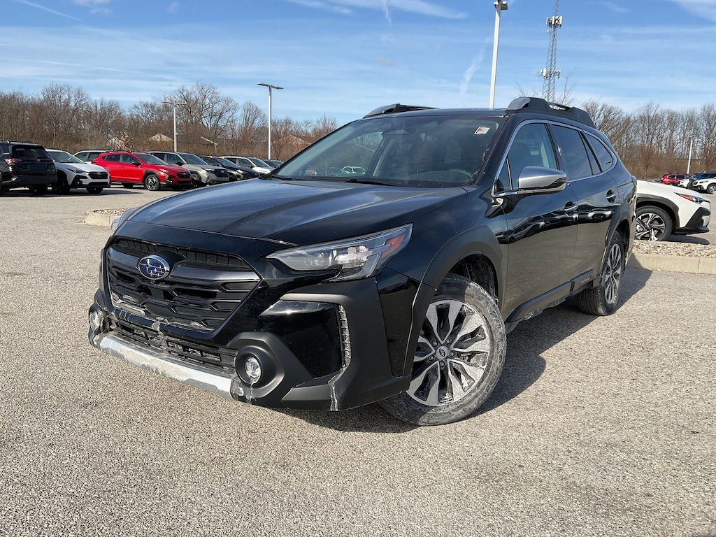 2025 Subaru Certified. Crystal Black Silica AWD Outback Touring CVT Lineartronic 12 Speakers, 4-Wheel Disc Brakes, ABS brakes, Air Conditioning, Alloy wheels, AM/FM radio: SiriusXM with 360L, Apple CarPlay & Android Auto, Auto High-beam Headlights, Auto-dimming Rear-View mirror, Automatic temperature control, Brake assist, Bumpers: body-color, Compass, Driver door bin, Driver vanity mirror, Dual front impact airbags, Dual front side impact airbags, Electronic Stability Control, Emergency communication system: MySubaru Safety (3-year free trial), Exterior Parking Camera Rear, Four wheel independent suspension, Front anti-roll bar, Front Bucket Seats, Front Center Armrest w/Storage, Front dual zone A/C, Front fog lights, Front reading lights, Fully automatic headlights, Garage door transmitter: HomeLink, harman/kardon® Speakers, Heated & Ventilated Front Bucket Seats, Heated door mirrors, Heated front seats, Heated rear seats, Heated steering wheel, HVAC memory, Illuminated entry, Knee airbag, Leather Shift Knob, Leather steering wheel, Low tire pressure warning, Memory seat, Navigation system: TomTom Navigation w/what3words, Occupant sensing airbag, Outside temperature display, Overhead airbag, Overhead console, Panic alarm, Passenger door bin, Passenger vanity mirror, Perforated Nappa Leather-Trimmed Upholstery, Power door mirrors, Power driver seat, Power Liftgate, Power moonroof, Power passenger seat, Power steering, Power windows, Radio: Subaru 11.6" Multimedia System w/Navigation, Rear anti-roll bar, Rear seat center armrest, Rear window defroster, Rear window wiper, Remote CD player, Remote keyless entry, Roof rack, Security system, Speed control, Speed-sensing steering, Split folding rear seat, Spoiler, Steering wheel mounted audio controls, Tachometer, Telescoping steering wheel, Tilt steering wheel, Traction control, Trip computer, Turn signal indicator mirrors, Variably intermittent wipers, Ventilated front seats, and Wheels: 18" x 7J Black Aluminum-Alloy.