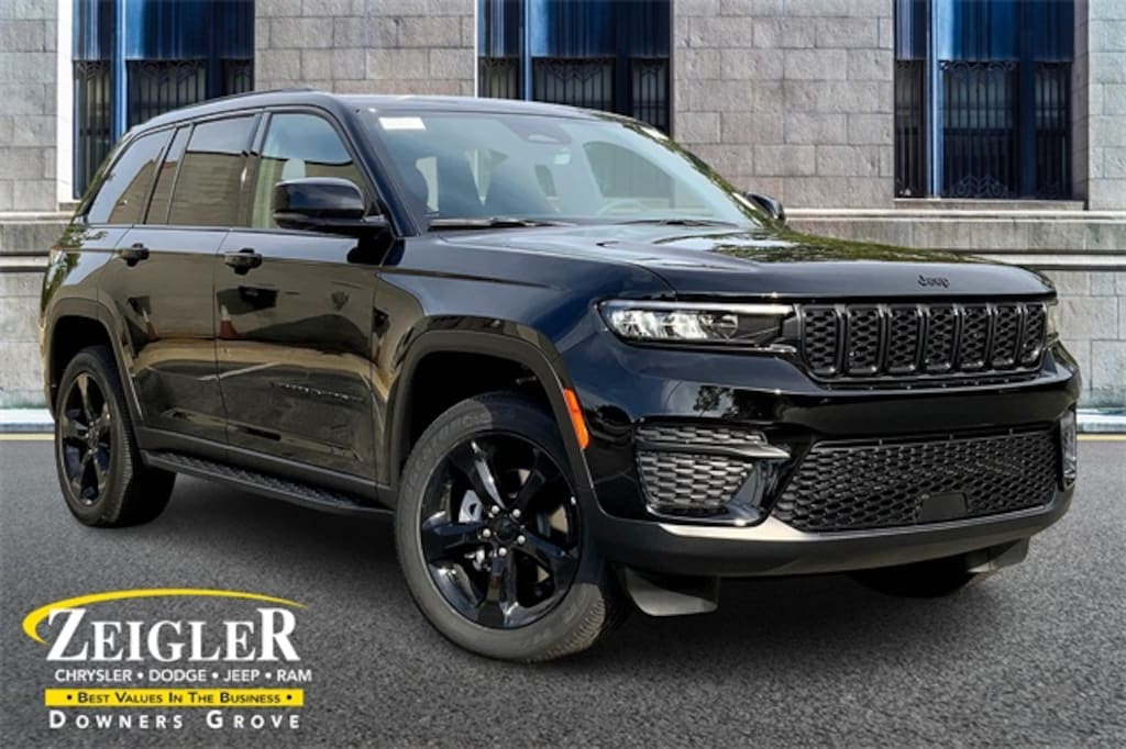 2025 Jeep Grand Cherokee Altitude X 4WD 8-Speed Automatic 3.6L V6 24V VVT Diamond Black Crystal Pearlcoat 4WD, 115V Auxiliary Power Outlet, 180 Amp Alternator, 7 & 4-Pin Wiring Harness, Altitude X, Automatic Headlamp Levelling System, Black Headliner, Capri Leatherette/Suede Seats, Class IV Receiver Hitch, Delete Laredo Badge, Gloss Black Exterior Accents, Heated Front Seats, Heated Steering Wheel, Heavy-Duty Engine Cooling, Power Liftgate, Power Sunroof, Quick Order Package 23M Altitude X, Rain Sensitive Windshield Wipers, Rear Load Levelling Suspension, Remote Start System, Selectable Tire Fill Alert, Trailer Hitch Zoom, Trailer Tow Package, Wheels: 18" x 8" Fully Painted Aluminum 1, Wireless Charging Pad. 19/26 City/Highway MPG Call our Sales department now! 630-241-5500 . Special financing is available in lieu of rebates. Price is good on in stock units and expires at the end of the month or when current incentives change. Zeigler price does not include tax, title, or license. Dealer is not responsible for pricing errors. Images may be stock factory photos and colors may vary. Please contact our sales department for more information.To View Details Click Window Sticker! Price includes: $1750 - 2025 National Retail Bonus Cash . Exp. 11/03/2025 $500 - 2025 National Jeep Monopoly Money Bonus Cash . Exp. 11/03/2025