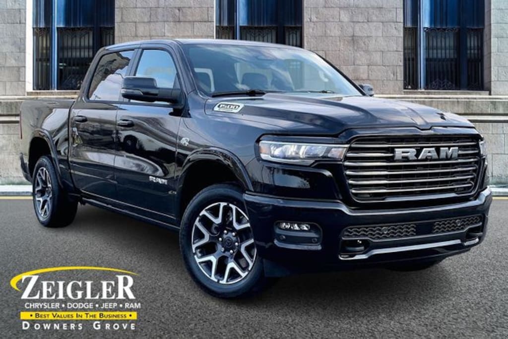 2026 Ram 1500 Laramie 4WD 8-Speed Automatic HEMI 5.7L V8 Multi Displacement VVT eTorque Diamond Black Crystal Pearlcoat Accent Color Premium Power Mirrors, Auto Power-Folding Mirrors, Auto-Dimming Exterior Driver Mirror, Black Painted Exterior Mirrors Caps, Body Color Front Bumper, Body Color Rear Bumper with Step Pads, Convex Wide-Angle Exterior Mirror Insert, Dome Dual LED Reading Lamp, Dual-Pane Panoramic Sunroof, Exterior Mirrors Courtesy Lamps, Exterior Mirrors with Heating Element, Exterior Mirrors with Memory, Exterior Mirrors with Supplemental Signals, Grille Surround 3 Body Color Tex 4 Chrome, Laramie Level 1 Equipment Group, Laramie Preferred Package, LED Dome/Reading Lamp, Navigation System, Power Deployable Running Boards, Quick Order Package 27H Laramie, Rain Sensitive Windshield Wipers, RAM Grille Badge - Chrome, Remote Tailgate Release, Tow Hooks, Trailer Brake Control. Call our Sales department now! 630-241-5500 . Special financing is available in lieu of rebates. Price is good on in stock units and expires at the end of the month or when current incentives change. Zeigler price does not include tax, title, or license. Dealer is not responsible for pricing errors. Images may be stock factory photos and colors may vary. Please contact our sales department for more information.To View Details Click Window Sticker! Price includes: $1000 - 2026 National Bonus Cash . Exp. 03/31/2026 $3500 - 2026 National Retail Consumer Cash . Exp. 03/31/2026 $500 - 2026 Midwest BC Regional Bonus Cash . Exp. 03/31/2026