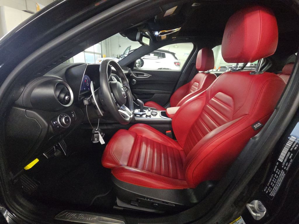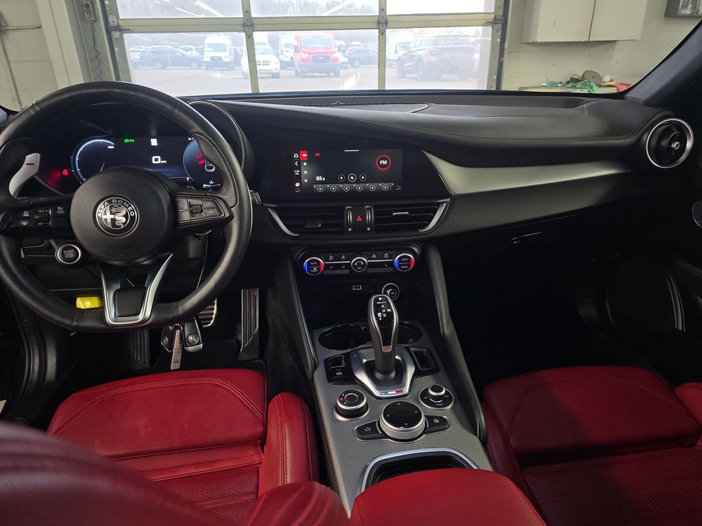 Recent Arrival! CARPLAY/ ANDROID AUTO*, BLUETOOTH*, PRE-CERTIFIED**, NON-SMOKER*, AWD*, ONE OWNER*, CLEAN CARFAX*, PANORAMIC SUNROOF*, FRONT PARKING SENSORS*, BACKUP CAMERA*, REAR PARKING SENSORS*, FORWARD COLLISION WARNING*, RED LEATHER INTERIOR*, HEATED SEATS*, HEATED STEERING WHEEL*, HARMON KARDON SOUND*, REMOTE START*, 8.8" NAVIGATION SCREEN*, PREMIUM LIGHTING*, PREMIUM SOUND*, 14 Speaker harman/kardon Premium Audio, Active Assist Plus Package, Active Blind Spot Assist, Air Conditioning, Aluminum Steering Column Mounted Paddle Shifters, Dark Miron V Scudetto Grille, Driver Attention Alert, Four wheel independent suspension, Highway Assist System, Intelligent Speed Assist (ISA), Lane Keep Assist, Leather Dash & Upper Doors, Limited Slip Differential Rear Axle, Manual Adjustable Thigh Support, Power Adjustable Bolster, Power driver seat, Power moonroof, Power steering, Power windows, Premium Interior & Sound Package, Quick Order Package 22S Veloce, Remote keyless entry, Sport Leather Seats, Steering wheel mounted audio controls, Tachometer, Telescoping steering wheel, Tilt steering wheel, Traffic Jam Assist, Traffic Sign Recognition, Veloce Rear Fascia, Wheels: 19" x 8.0" Sport 5-Hole Aluminum. CARFAX One-Owner. 2024 Alfa Romeo Giulia Veloce AWD Vulcano Black Metallic