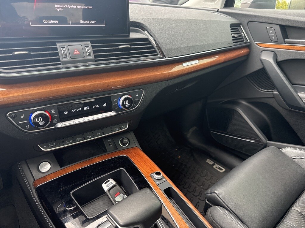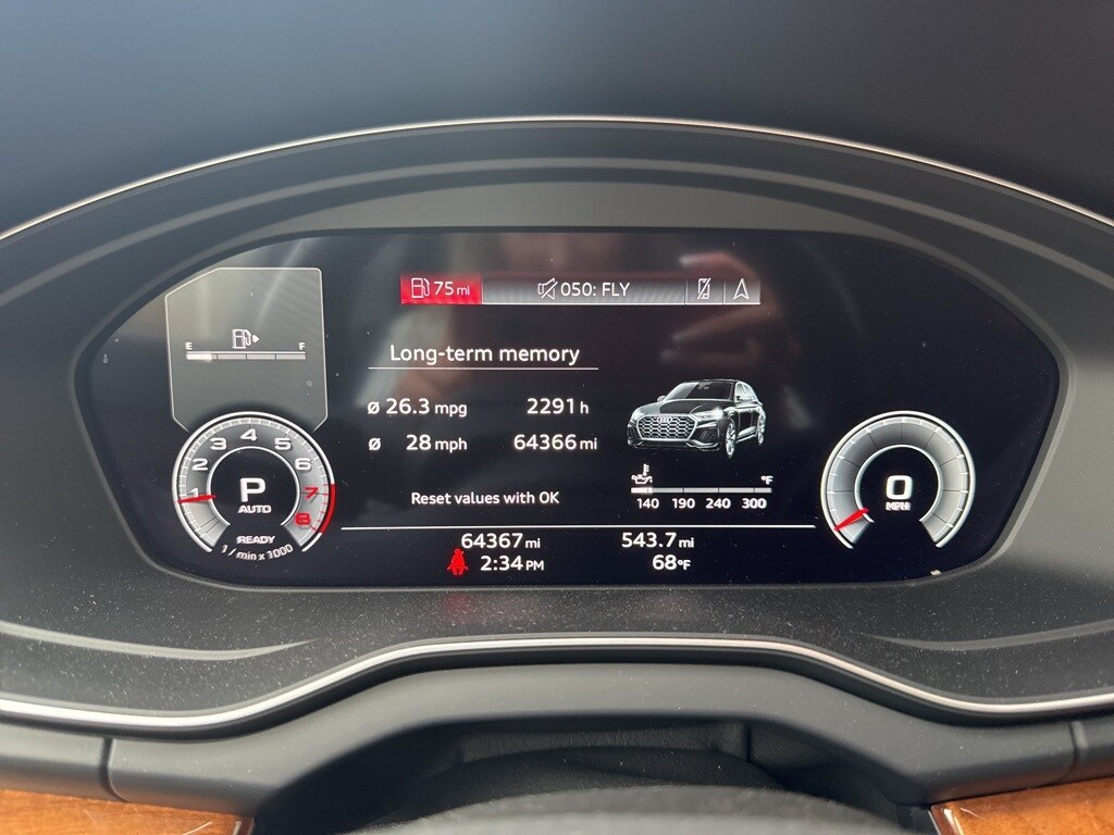 2021 Audi Q5 45 Prestige quattro ONE OWNER, LOCAL TRADE, ACTIVE BLIND SPOT DETECTION, APPLE CARPLAY COMPATIBILITY, HD RADIO, POWER SEATS, FRONT VENTILATED SEATS, HEATED FRONT SEATS, HEATED REAR SEATS, HEATED STEERING WHEEL, HEAD-UP DISPLAY, PANORAMIC MOONROOF, REAR CAMERA, PARKING ASSISTANT, POWER LIFTGATE, Black w/Leather Seating Surfaces, 10 Speakers, ABS brakes, Adaptive Cruise Control w/Traffic Jam Assist, Audi Active Lane Assist, Audi Advanced Key, Audi Connect PRIME & PLUS, Audi Phone Box, Audi Virtual Cockpit Plus, Auto-Dimming Power Folding Exterior Mirrors, Automatic temperature control, Bang & Olufsen Sound System w/3D Sound, Brake assist, CONVENIENCE PACKAGE, Driver door bin, Driver Seat Memory, Dual front side impact airbags, Dual Pane Acoustic Glass for Front Side Windows, Front anti-roll bar, Front Center Armrest, Front Door Sills w/Aluminum Inlay, Front fog lights, Genuine wood console insert, Hands-On Detection Steering Wheel, Head-Up Display, Heated Rear Seats, Heated Steering Wheel, Interior Lighting Plus Package, Leatherette Covered Center Console & Door Armrests, Manual Rear Side Window Shades, Matrix-Design LED Headlights w/Headlight Washers, MMI Navigation Plus, Navigation Package, Panoramic Sunroof, Park Assist, Power Adjustable Steering Column, Power Liftgate, Power passenger seat, Prestige Package, Rear anti-roll bar, Remote keyless entry, SiriusXM All Access Service, Speed-sensing steering, Speed-Sensitive Wipers, Split folding rear seat, Stainless Steel Trunk Sill, Steering wheel mounted audio controls, Top View Camera System, Traffic Sign Recognition, Ventilated Front Sport Seats w/4-Way Power Lumbar, Warm Weather Package, Wheels: 19" 5-Double-Arm Design Bi-Color Finish. Manhattan Gray Metallic 7-Speed Automatic S tronic quattro 2.0L Turbocharged