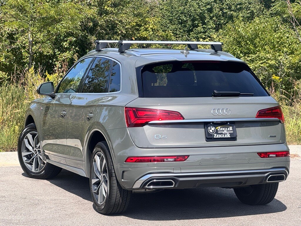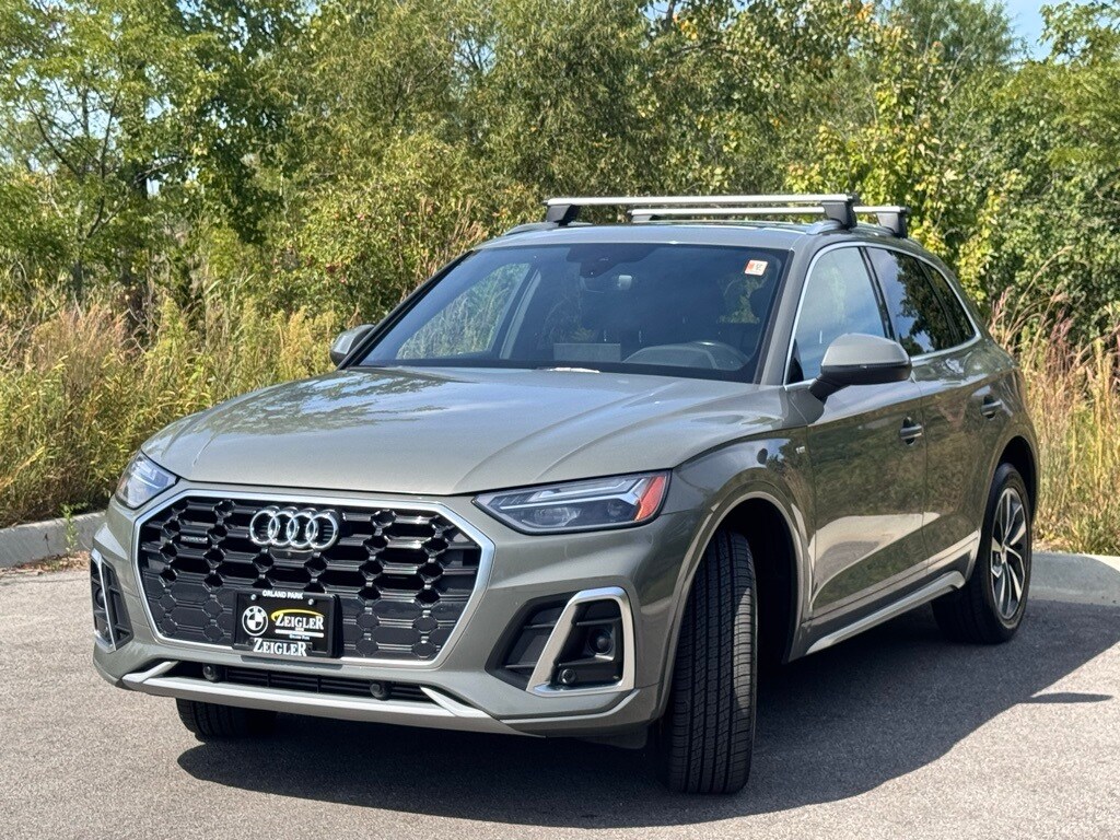 2023 Audi Q5 45 S line Premium Plus quattro ONE OWNER, APPLE CARPLAY COMPATIBILITY, HEATED FRONT SEATS, HEATED STEERING WHEEL, NAVIGATION, REAR CAMERA, PARKING ASSISTANT, POWER LIFTGATE, Black w/Leather Seating Surfaces, ABS brakes, Alloy wheels, Audi Active Lane Assist, Audi Advanced Key, Audi Virtual Cockpit Plus, Auto-Dimming Power Folding Exterior Mirrors, Bang & Olufsen Sound System w/3D Sound, Compass, CONVENIENCE PACKAGE, Delay-off headlights, Driver Seat Memory, Driver vanity mirror, Electronic Stability Control, Front dual zone A/C, Genuine wood console insert, Hands-On Detection Steering Wheel, Heated door mirrors, Heated front seats, Heated Steering Wheel, Illuminated entry, Leatherette Covered Center Console & Door Armrests, Low tire pressure warning, Panic alarm, Panoramic Sunroof, Power Adjustable Steering Column, Power door mirrors, Power Liftgate, Premium Plus Package, Rear fog lights, Rear window wiper, Remote keyless entry, Roof rack, SiriusXM w/360L, Top View Camera System, Traction control, Traffic Jam Assist, Wheels: 19" 5-Double-Arm Design Bi-Color Finish. Chronos Gray Metallic 7-Speed Automatic S tronic quattro 2.0L Turbocharged