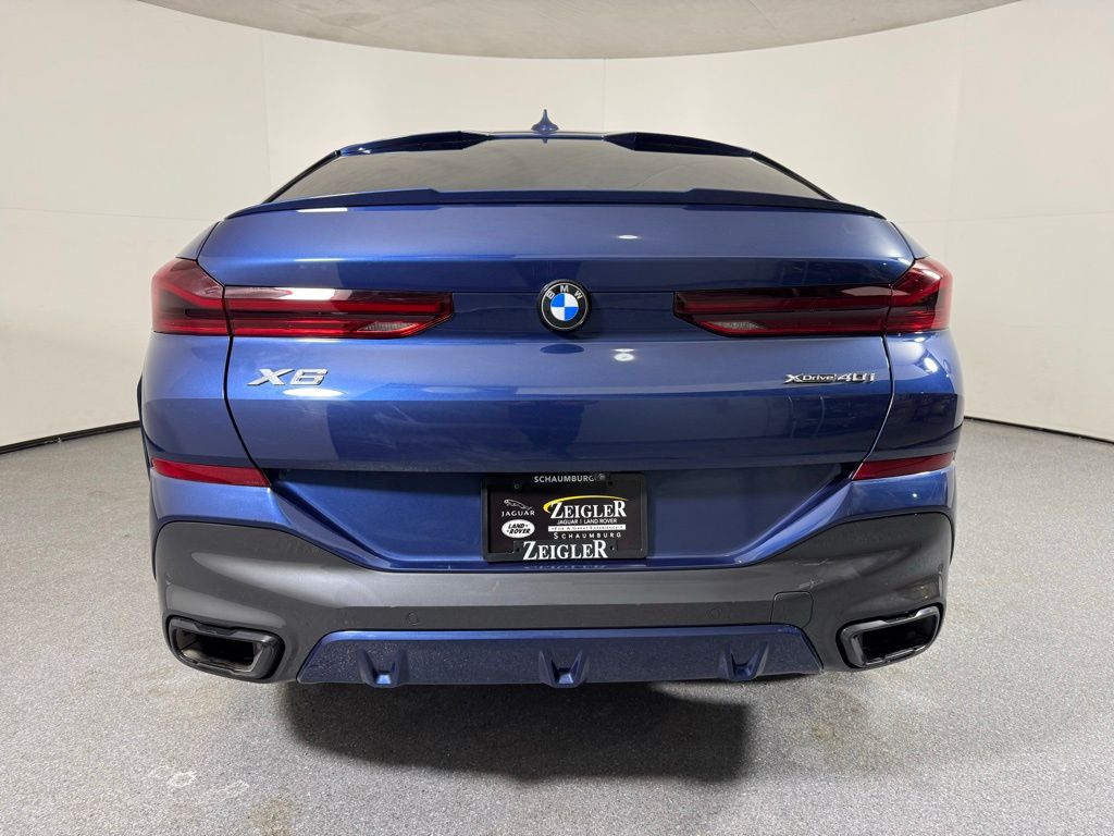 The 2022 BMW X6 xDrive40i is a standout in the luxury coupe-SUV segment, blending aggressive styling with refined road manners. This specific build, finished in Phytonic Blue Metallic with a Black Extended Merino Leather interior, strikes a perfect balance between sportiness and opulence. Outfitted with the M Sport and Shadowline packages, the vehicle features darkened exterior accents and a more muscular stance that emphasizes its unique fastback silhouette. Performance Power is delivered by a silk-smooth 3.0L BMW Twin Power Turbo inline 6-cylinder engine paired with a 48V mild-hybrid system.1 This setup produces $335text{ hp}$ and $331text{ lb-ft}$ of torque, routed through an 8-speed Sport Automatic transmission to the x Drive all-wheel-drive system. The M Sport Package enhances the driving dynamics with an M Sport exhaust system and an aerodynamic kit, ensuring the vehicle sounds as athletic as it performs.2DesignThe exterior is defined by the striking Shadowline trim, which replaces chrome with high-gloss black accents, perfectly complementing the deep Phytonic Blue Metallic paint. Inside, the cabin is elevated by Black Extended Merino Leather and the Executive Package, which includes the Panoramic Sky Lounge LED Roof and glass controls.3 The M Sport steering wheel and anthracite headliner complete the driver-focused, premium aesthetic. Technology. This X6 is a digital powerhouse, featuring the BMW Live Cockpit Professional with dual 12.3-inch displays.4 The Executive Package adds a Head-Up Display and Gesture Control, while the Harman Kardon Surround Sound System provides a 16-speaker cinematic audio experience. For modern connectivity, the vehicle is equipped with Wireless Charging and seamless integration for smartphone interfaces. Advanced Safety Features Safety is paramount with the Active Driving Assistant suite, which includes Forward Collision Warning, Active Blind Spot Detection, and Lane Departure Warning.5 The Executive Package further enhances visibility and ease of operation with the Parking Assistant Plus, providing a 3D surround-view camera system that makes maneuvering the X6's bold proportions effortless in tight spaces.6Convenience and Comfort. The interior environment is optimized by the Climate Comfort Package, offering 4-zone automatic climate control and heated front and rear seats.7 The Multi-Contour Seats provide highly adjustable support for long-distance travel, while the Executive Package adds rear manual side window shades and icon adaptive LED headlights with Laser light for superior nighttime visibility and passenger privacy.