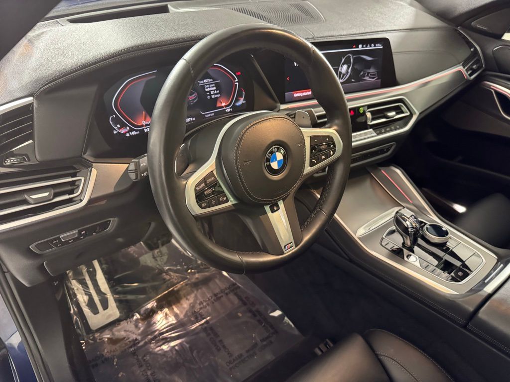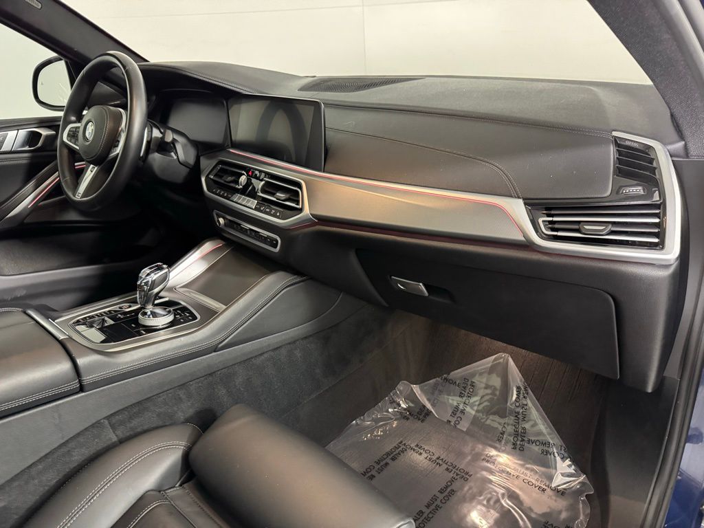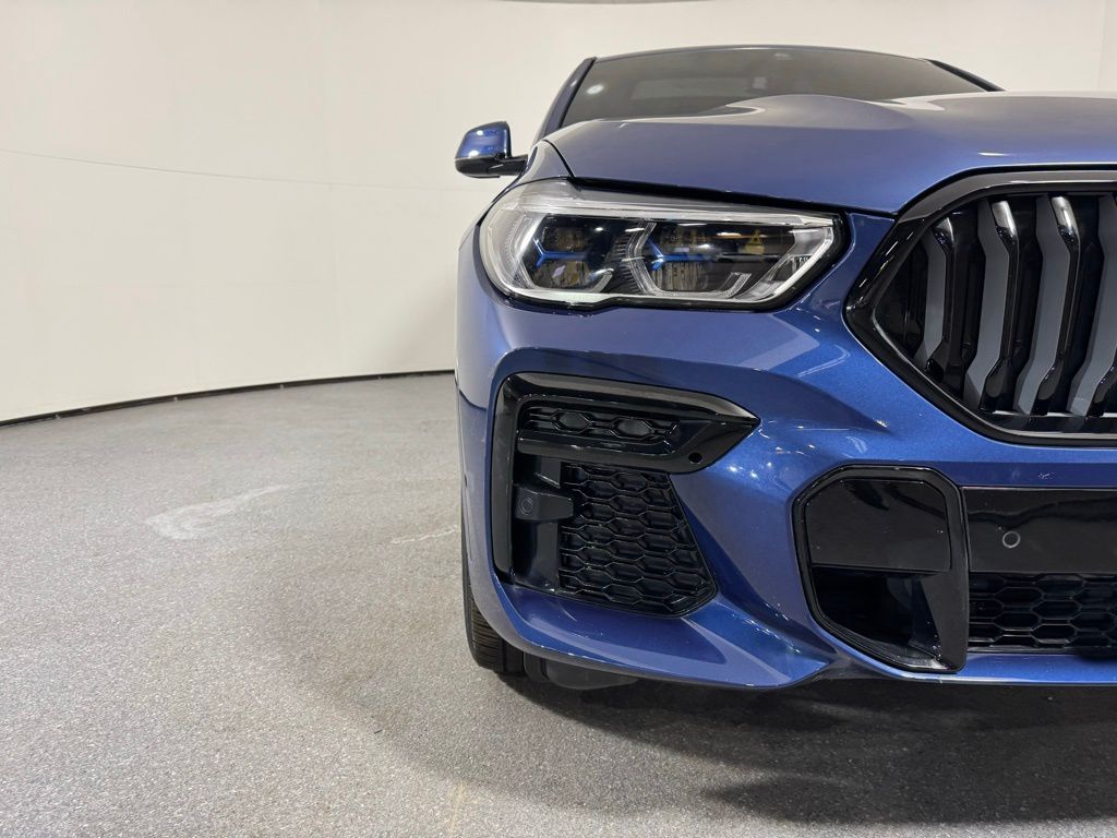 The 2022 BMW X6 xDrive40i is a standout in the luxury coupe-SUV segment, blending aggressive styling with refined road manners. This specific build, finished in Phytonic Blue Metallic with a Black Extended Merino Leather interior, strikes a perfect balance between sportiness and opulence. Outfitted with the M Sport and Shadowline packages, the vehicle features darkened exterior accents and a more muscular stance that emphasizes its unique fastback silhouette. Performance Power is delivered by a silk-smooth 3.0L BMW Twin Power Turbo inline 6-cylinder engine paired with a 48V mild-hybrid system.1 This setup produces $335text{ hp}$ and $331text{ lb-ft}$ of torque, routed through an 8-speed Sport Automatic transmission to the x Drive all-wheel-drive system. The M Sport Package enhances the driving dynamics with an M Sport exhaust system and an aerodynamic kit, ensuring the vehicle sounds as athletic as it performs.2DesignThe exterior is defined by the striking Shadowline trim, which replaces chrome with high-gloss black accents, perfectly complementing the deep Phytonic Blue Metallic paint. Inside, the cabin is elevated by Black Extended Merino Leather and the Executive Package, which includes the Panoramic Sky Lounge LED Roof and glass controls.3 The M Sport steering wheel and anthracite headliner complete the driver-focused, premium aesthetic. Technology. This X6 is a digital powerhouse, featuring the BMW Live Cockpit Professional with dual 12.3-inch displays.4 The Executive Package adds a Head-Up Display and Gesture Control, while the Harman Kardon Surround Sound System provides a 16-speaker cinematic audio experience. For modern connectivity, the vehicle is equipped with Wireless Charging and seamless integration for smartphone interfaces. Advanced Safety Features Safety is paramount with the Active Driving Assistant suite, which includes Forward Collision Warning, Active Blind Spot Detection, and Lane Departure Warning.5 The Executive Package further enhances visibility and ease of operation with the Parking Assistant Plus, providing a 3D surround-view camera system that makes maneuvering the X6's bold proportions effortless in tight spaces.6Convenience and Comfort. The interior environment is optimized by the Climate Comfort Package, offering 4-zone automatic climate control and heated front and rear seats.7 The Multi-Contour Seats provide highly adjustable support for long-distance travel, while the Executive Package adds rear manual side window shades and icon adaptive LED headlights with Laser light for superior nighttime visibility and passenger privacy.