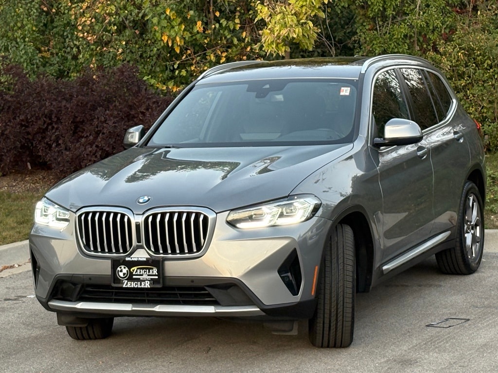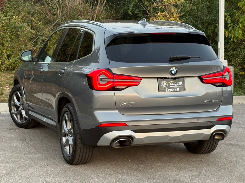 2023 BMW X3 xDrive30i ONE OWNER, LOCAL TRADE, APPLE CARPLAY COMPATIBILITY, HARMAN KARDON SURROUND SOUND, POWER SEATS, AMBIENT LIGHTING, HEATED FRONT SEATS, HEATED STEERING WHEEL, SUNROOF/MOONROOF, REAR CAMERA, PARKING ASSISTANT, PREMIUM PACKAGE, POWER LIFTGATE, 8-Speed Automatic Sport, ABS brakes, Air Conditioning, Auto-dimming Rear-View mirror, BMW Assist eCall, Connected Package Pro, ConnectedDrive Services, Driver Lumbar Support, Electronic Stability Control, Emergency communication system: BMW Assist eCall, Exterior Parking Camera Rear, Harman/Kardon Surround Sound System, Heated Front Seats, Heated Steering Wheel, Live Cockpit Pro w/Navigation, Outside temperature display, Panoramic Moonroof (ZPA), Premium Package w/ZPA, Radio data system, Rear reading lights, Remote keyless entry, SiriusXM Satellite Radio, Sport Seats, Sport steering wheel, Steering wheel mounted audio controls, Traction control. Skyscraper Gray Metallic 8-Speed Automatic Sport AWD 2.0L I4 TwinPower Turbo