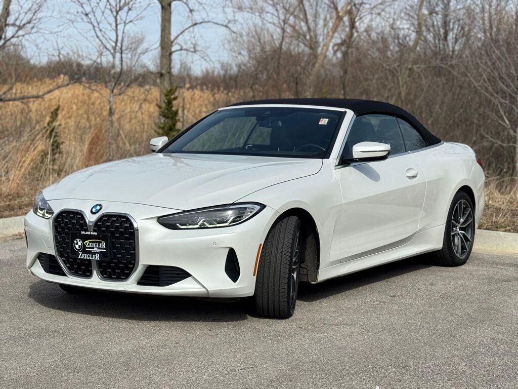 2024 BMW 4 Series 430i xDrive ONE OWNER, ACTIVE BLIND SPOT DETECTION, APPLE CARPLAY COMPATIBILITY, HD RADIO, POWER SEATS, HEATED FRONT SEATS, HEATED STEERING WHEEL, NAVIGATION, REAR CAMERA, PREMIUM PACKAGE, REMOTE ENGINE START, 10 Speakers, Alloy wheels, AM/FM Radio, AM/FM radio: SiriusXM with 360L, Apple CarPlay & Android Auto Compatibility, Auto High-beam Headlights, Automatic temperature control, BMW Assist eCall, BMW Curved Display w/HUD, BMW TeleServices, Brake assist, Comfort Access Keyless Entry, Connected Package Pro, ConnectedDrive Services, Delay-off headlights, Electronic Stability Control, Enhanced USB & Bluetooth w/Smartphone Integration, Exterior Parking Camera Rear, Front dual zone A/C, Fully automatic headlights, Garage door transmitter, Glass rear window, Heated Front Seats, Heated Steering Wheel, Hi-Fi Sound System, Leather steering wheel, Lumbar Support, Memory seat, Navigation, Navigation System, Power driver seat, Power Front Seats, Power passenger seat, Rain sensing wipers, Rear window defroster, Remote Engine Start, Remote keyless entry, SiriusXM w/360L, SPECIAL EDITION, Speed control, Speed-Sensitive Wipers, Sport Seats, Steering wheel mounted audio controls, Telescoping steering wheel, Tilt steering wheel, Variably intermittent wipers, Wheels: 18" x 7.5" V-Spoke Bi-Color Orbit Grey, Widescreen Display, Wireless Device Charging. White Metallic 8-Speed Automatic Sport AWD 2.0L 4-Cylinder TwinPower Turbo
