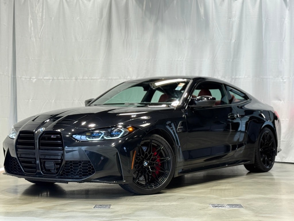 2024 BMW M4 Competition ONE OWNER, LOCAL TRADE, ACTIVE BLIND SPOT DETECTION, APPLE CARPLAY COMPATIBILITY, HD RADIO, COMFORT ACCESS, DRIVER ASSISTANCE PACKAGE PRO, POWER SEATS, AMBIENT LIGHTING, FRONT VENTILATED SEATS, HEATED FRONT SEATS, HEAD-UP DISPLAY, SUNROOF/MOONROOF, REAR CAMERA, PARKING ASSISTANT, REMOTE ENGINE START, GESTURE CONTROL, MECHANICALLY INSPECTED BY BMW CERTIFIED TECHNICIANS, NEW FRONT BRAKE PADS AND ROTORS!!, 2 NEW TIRES AND ALIGNMENT!!, OIL CHANGE PERFORMED AT 60,067 MILES!!, OIL CHANGE PERFORMED AT 60,067 MILES!!, Icon Adaptive LED w/Laserlight, M Compound Brakes with Red Cal, M Shadowline Lights, ABS brakes, Active Driving Assistant Pro, Apple CarPlay & Android Auto Compatibility, Auto High-beam Headlights, Auto-dimming door mirrors, Auto-dimming Rear-View mirror, Automatic temperature control, BMW Curved Display w/HUD, Brake assist, Connected Package Pro, ConnectedDrive Services, Driver door bin, Driver vanity mirror, Driving Assistance Professional Package, EXECUTIVE PACKAGE, Extended Merino Leather Upholstery, Extended Traffic Jam Assistant, Front anti-roll bar, Front Center Armrest, Harman/Kardon Surround Sound System, harman/kardon® Speakers, Heated door mirrors, Heated Front Seats, Heated front seats, Heated Steering Wheel, Leather steering wheel, Lumbar Support, M Sport Seats, Moonroof, Occupant sensing airbag, Outside temperature display, PARK DISTANCE CONTROL, Parking Assistant Plus, Personal eSIM 5G, Power Front Seats, Power passenger seat, Power Tailgate, Remote Engine Start, Speed-sensing steering, Tilt steering wheel, Turn signal indicator mirrors, Widescreen Display. Black Sapphire Metallic 8-Speed Automatic Sport AWD 3.0L I6 Turbocharged DOHC 24V LEV3-ULEV70 503hp