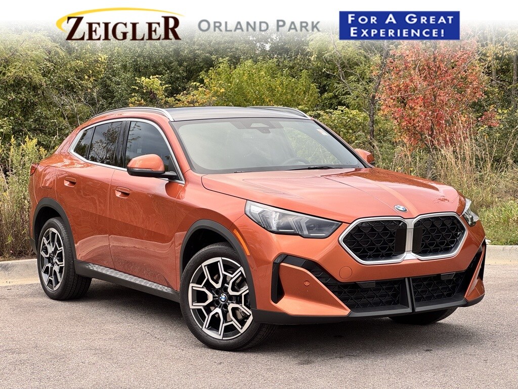 2025 BMW X2 xDrive28i ONE OWNER, ACTIVE BLIND SPOT DETECTION, APPLE CARPLAY COMPATIBILITY, COMFORT ACCESS, POWER SEATS, HEATED FRONT SEATS, HEATED STEERING WHEEL, HEAD-UP DISPLAY, NAVIGATION, PANORAMIC MOONROOF, REAR CAMERA, PARKING ASSISTANT, PREMIUM PACKAGE, REMOTE ENGINE START, POWER LIFTGATE, Illuminated Kidney Grille, ACC Stop & Go + Active Driving Assistant, Acoustic Glass, AM/FM Radio, Anti Theft Recorder, Apple CarPlay & Android Auto Compatibility, Auto High-beam Headlights, Auto-Dimming Interior & Exterior Mirrors, Auto-Dimming Rear-View Mirror, BMW Assist eCall, BMW Digital Key Plus w/UWB, BMW TeleServices, Brake assist, Bumpers: body-color, Comfort Access Keyless Entry, Driver door bin, Emergency communication system: BMW Assist eCall, Exterior Parking Camera Rear, Four wheel independent suspension, Front Center Armrest, Front dual zone A/C, harman/kardon® Logic 7® Digital Surround, Head-Up Display, Heated door mirrors, Heated front seats, Illuminated Kidney Grille, Interior Camera, Knee airbag, Live Cockpit Pro, Navigation, Parking Assistant Plus, Personal eSIM 5G, Power Liftgate, Power-Folding Mirrors, Premium Content 1, Radio data system, Rear anti-roll bar, Remote Engine Start, Remote keyless entry, SiriusXM w/360L & 1 Yr Platinum Plan Subscription, Sky Lounge Panoramic Roof, SPECIAL EDITION, Steering wheel mounted audio controls, Surround View w/3D View, Turn signal indicator mirrors, UNIVERSAL GARAGE-DOOR OPENER, Widescreen Display, Wireless Device Charging. Utah Orange Metallic 7-Speed Automatic AWD 2.0L 4-Cylinder DOHC 16V TwinPower Turbo
