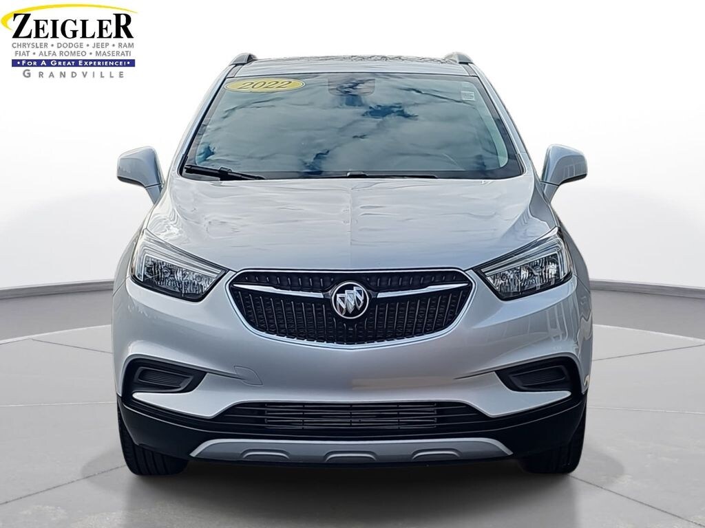 2022 Buick Encore Preferred Quicksilver Metallic 18" Aluminum Wheels, 2-Way Manual Front Passenger Seat Adjuster, 3.53 Final Drive Axle Ratio, 4-Wheel Disc Brakes, 6 Speakers, 6-Speaker Audio System, 6-Way Power Driver Seat Adjuster, ABS brakes, Air Conditioning, Alloy wheels, AM/FM radio: SiriusXM, Apple CarPlay/Android Auto, Brake assist, Bumpers: body-color, Cloth w/Leatherette Seat Trim, Compass, Delay-off headlights, Driver door bin, Driver vanity mirror, Driver's Seat Mounted Armrest, Dual front impact airbags, Dual front side impact airbags, Electronic Stability Control, Emergency communication system: OnStar and Buick connected services capable, Exterior Parking Camera Rear, Front anti-roll bar, Front Bucket Seats, Front License Plate Bracket, Front reading lights, Front wheel independent suspension, Fully automatic headlights, Heated door mirrors, Illuminated entry, Knee airbag, Leather steering wheel, Low tire pressure warning, Occupant sensing airbag, Outside temperature display, Overhead airbag, Panic alarm, Passenger door bin, Passenger vanity mirror, Power door mirrors, Power driver seat, Power steering, Power windows, Preferred Equipment Group 1SB, Radio data system, Radio: 7" Diagonal Buick Infotainment System, Rear seat center armrest, Rear side impact airbag, Rear window defroster, Rear window wiper, Remote keyless entry, Remote Vehicle Starter System, Ride & Handling Suspension, Roof rack: rails only, Security system, SiriusXM Radio, Speed control, Speed-sensing steering, Split folding rear seat, Spoiler, Steering wheel mounted audio controls, Tachometer, Telescoping steering wheel, Tilt steering wheel, Traction control, Trip computer, Variably intermittent wipers.