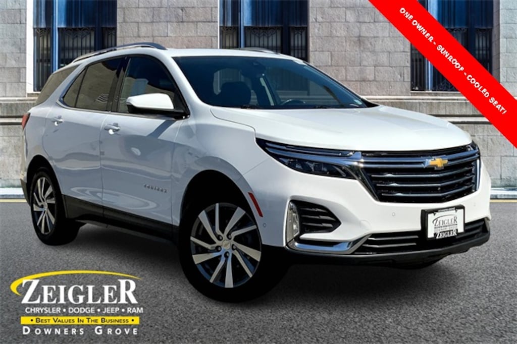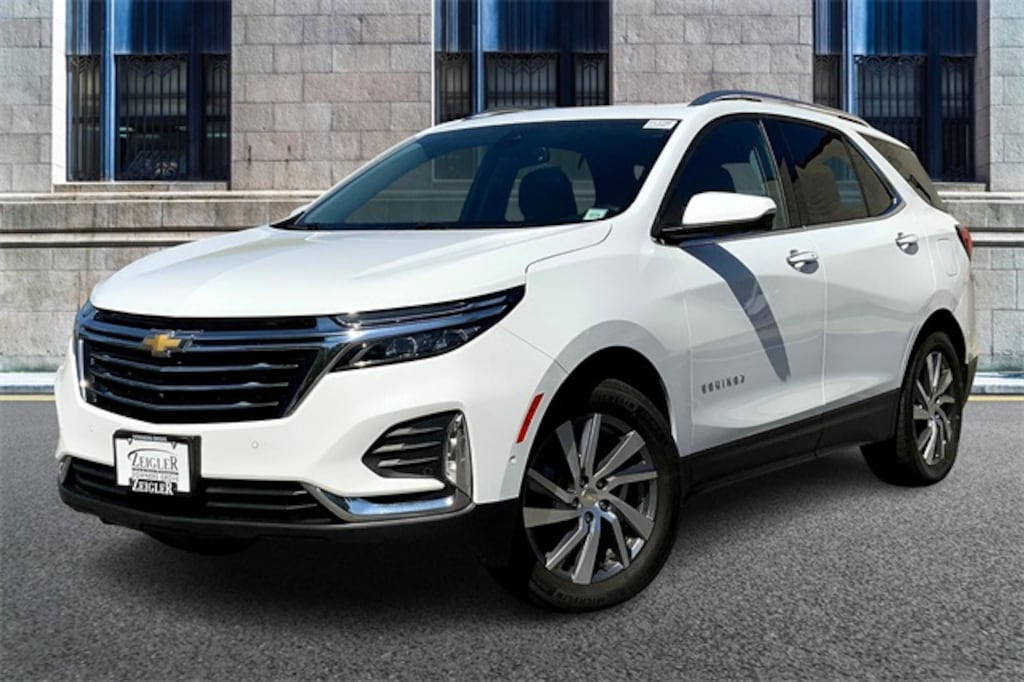 2022 Chevrolet Equinox Premier Summit White **LEATHER**, **PANORAMIC ROOF**, **BLUE TOOTH**, **COOLED SEATS**, **HEATED STEERING WHEEL**, **PARKVIEW REAR BACK-UP CAMERA**, **ONE OWNER**, **HEATED SEATS**,, AWD, 8-Way Power Front Passenger Seat Adjuster, Adaptive Cruise Control, Automatic Front & Rear Parking Assist, Confidence & Convenience II Package, Driver Confidence III Package, Driver Convenience II Package, HD Surround Vision, Heated Rear Outboard Seating Positions, Preferred Equipment Group 1LZ, Ventilated Driver Seat, Ventilated Front Passenger Seat. 25/30 City/Highway MPG 25/30 City/Highway MPG The value of used vehicles varies with mileage, usage and condition. Book values should be considered estimates only. Some of our used vehicles may be subject to unrepaired safety recalls. Check for a vehicle's unrepaired recalls by VIN at http://vinrcl.safercar.gov/vin/