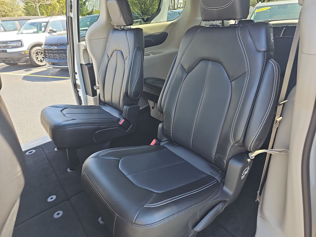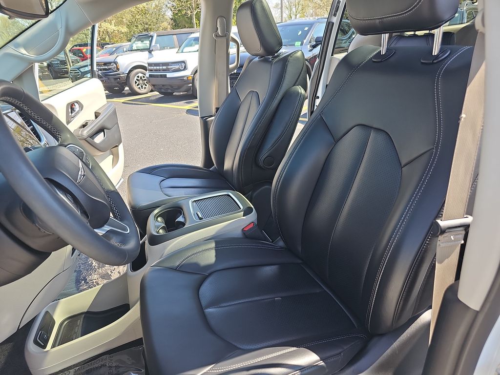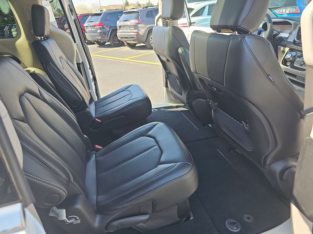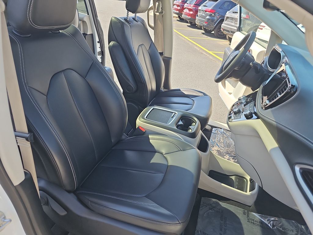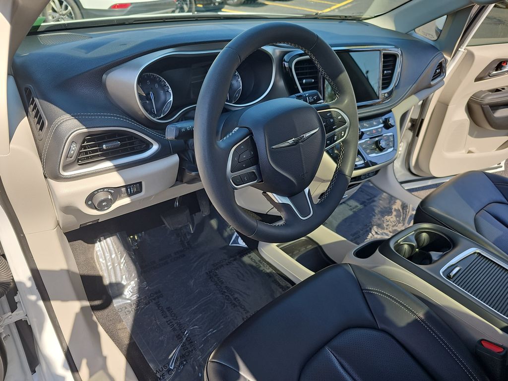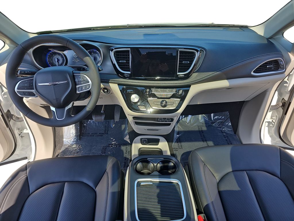 2023 Chrysler Pacifica Touring L Bright White Clearcoat 10.1" Touchscreen Display, 17" x 7.0" Aluminum Wheels, 3.25 Axle Ratio, 3rd row seats: split-bench, 4-Wheel Disc Brakes, 6 Speakers, ABS brakes, Air Conditioning, Alloy wheels, AM/FM radio: SiriusXM, Apple CarPlay, Apple CarPlay/Android Auto, Audio memory, Automatic temperature control, Black Seats, Brake assist, Bumpers: body-color, Caprice Leatherette Bucket Seats, Compass, Delay-off headlights, Disassociated Touchscreen Display, Driver door bin, Driver vanity mirror, Driver's Seat Mounted Armrest, Dual front impact airbags, Dual front side impact airbags, Electronic Stability Control, Four wheel independent suspension, Front anti-roll bar, Front Bucket Seats, Front dual zone A/C, Front Fascia Air Deflectors, Front fog lights, Front reading lights, Fully automatic headlights, Google Android Auto, GPS Antenna Input, Heated door mirrors, Heated front seats, Heated steering wheel, Illuminated entry, Integrated Active Noise Cancellation, Integrated Center Stack Radio, Knee airbag, Low tire pressure warning, Memory seat, Occupant sensing airbag, Outside temperature display, Overhead airbag, Overhead console, Panic alarm, ParkView Rear Back-Up Camera, Passenger door bin, Passenger seat mounted armrest, Passenger vanity mirror, Power door mirrors, Power driver seat, Power Front/Fixed Rear Full Sunroof, Power Liftgate, Power Open/Close Shade, Power steering, Power windows, Quick Order Package 27L, Radio data system, Radio: Uconnect 5 w/10.1" Display, Rain sensing wipers, Rear air conditioning, Rear reading lights, Rear window defroster, Rear window wiper, Reclining 3rd row seat, Remote keyless entry, Security system, Speed control, Split folding rear seat, Spoiler, Steering wheel mounted audio controls, Tachometer, Telescoping steering wheel, Tilt steering wheel, Touring Suspension, Traction control, Trip computer, Turn signal indicator mirrors, USB Host Flip, Variably intermittent wipers, Voltmeter.