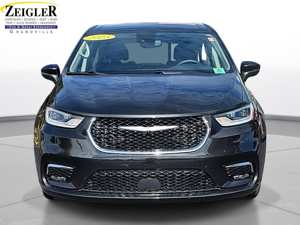 Recent Arrival! 2023 Chrysler Pacifica Touring L Brilliant Black Crystal Pearlcoat 10.1" Touchscreen Display, 17" x 7.0" Aluminum Wheels, 3.25 Axle Ratio, 3rd row seats: split-bench, 4-Wheel Disc Brakes, 6 Speakers, ABS brakes, Air Conditioning, Alloy wheels, AM/FM radio: SiriusXM, Apple CarPlay, Apple CarPlay/Android Auto, Audio memory, Automatic temperature control, Black Seats, Brake assist, Bumpers: body-color, Caprice Leatherette Bucket Seats, Compass, Delay-off headlights, Disassociated Touchscreen Display, Driver door bin, Driver vanity mirror, Driver's Seat Mounted Armrest, Dual front impact airbags, Dual front side impact airbags, Electronic Stability Control, Four wheel independent suspension, Front anti-roll bar, Front Bucket Seats, Front dual zone A/C, Front Fascia Air Deflectors, Front fog lights, Front reading lights, Fully automatic headlights, Google Android Auto, GPS Antenna Input, Heated door mirrors, Heated front seats, Heated steering wheel, Illuminated entry, Integrated Active Noise Cancellation, Integrated Center Stack Radio, Knee airbag, Low tire pressure warning, Memory seat, Occupant sensing airbag, Outside temperature display, Overhead airbag, Overhead console, Panic alarm, ParkView Rear Back-Up Camera, Passenger door bin, Passenger seat mounted armrest, Passenger vanity mirror, Power door mirrors, Power driver seat, Power Liftgate, Power steering, Power windows, Quick Order Package 27L, Radio data system, Radio: Uconnect 5 w/10.1" Display, Rain sensing wipers, Rear air conditioning, Rear reading lights, Rear window defroster, Rear window wiper, Reclining 3rd row seat, Remote keyless entry, Security system, Speed control, Split folding rear seat, Spoiler, Steering wheel mounted audio controls, Tachometer, Telescoping steering wheel, Tilt steering wheel, Touring Suspension, Traction control, Trip computer, Turn signal indicator mirrors, USB Host Flip, Variably intermittent wipers, Voltmeter.
