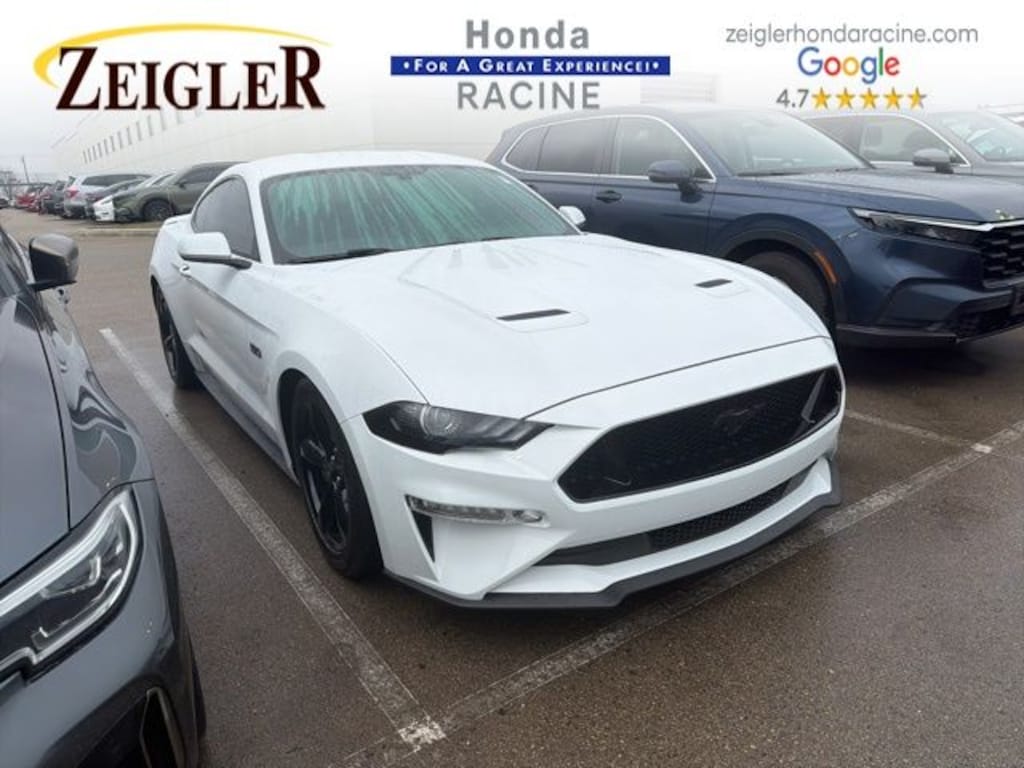 2019 Oxford White Ford Mustang GT âFOR A GREAT EXPERIENCEâ visit Zeigler Honda of Racine, because we take pride in treating our customers like family, ensuring that your experience is one that you will never forget. We have 4.7 Google Rating! Making our store the highest rated Honda dealer in the state of Wisconsin! Every vehicle has been through a multi-point safety inspection and professionally cleaned and disinfected for your protection. With a convenient location off of I-94 at exit 333; we are proud to serve customers in Racine, Sturtevant, Caledonia, Mount Pleasant, Union Grove, Burlington, Kenosha, Bristol, Waukesha, Milwaukee, Oak Creek and many other surrounding areas! Our Sales Consultants are Factory Certified and have earned some of the highest customer satisfaction ratings in Southeast Wisconsin. We specialize in New Honda, Certified Pre-Owned Honda, as well as many other makes and models that fit all budgets and prices. We offer affordable purchase and leasing options. If you are traveling from Waukegan, Gurnee, Naperville, Pleasant Prairie, Antioch, Fox Lake, or even Madison, feel free to browse our entire inventory of new or pre-owned vehicles right from your home: zeiglerhondaracine.com. Even if we don't have the exact vehicle in our inventory, we will gladly bring one in for you and still guarantee the lowest price possible. A little further than a hop, skip or a jump? We can arrange shipping & delivery! Price may exclude certification, added accessories and/or packages, certain taxes, $399 doc fee, charges and/or fees. Dealer is not responsible for pricing errors, although we strive to be accurate, we are human. The value of used vehicles varies with mileage, usage and condition. Book values should be considered estimates only. Some of our used vehicles may be subject to unrepaired safety recalls. Check for a vehicle's unrepaired recalls by VIN at http://vinrcl.safercar.gov/vin/. See dealer for complete details.