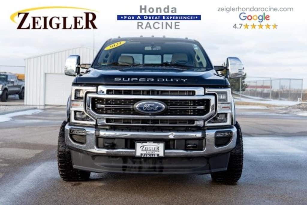2021 Black Ford F-350SD Lariat âFOR A GREAT EXPERIENCEâ visit Zeigler Honda of Racine, because we take pride in treating our customers like family, ensuring that your experience is one that you will never forget. We have 4.7 Google Rating! Making our store the highest rated Honda dealer in the state of Wisconsin! Every vehicle has been through a multi-point safety inspection and professionally cleaned and disinfected for your protection. With a convenient location off of I-94 at exit 333; we are proud to serve customers in Racine, Sturtevant, Caledonia, Mount Pleasant, Union Grove, Burlington, Kenosha, Bristol, Waukesha, Milwaukee, Oak Creek and many other surrounding areas! Our Sales Consultants are Factory Certified and have earned some of the highest customer satisfaction ratings in Southeast Wisconsin. We specialize in New Honda, Certified Pre-Owned Honda, as well as many other makes and models that fit all budgets and prices. We offer affordable purchase and leasing options. If you are traveling from Waukegan, Gurnee, Naperville, Pleasant Prairie, Antioch, Fox Lake, or even Madison, feel free to browse our entire inventory of new or pre-owned vehicles right from your home: zeiglerhondaracine.com. Even if we don't have the exact vehicle in our inventory, we will gladly bring one in for you and still guarantee the lowest price possible. A little further than a hop, skip or a jump? We can arrange shipping & delivery! Price may exclude certification, added accessories and/or