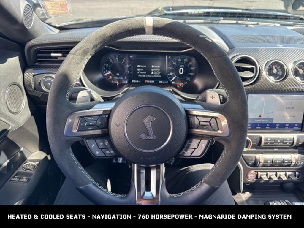 **SHOWROOM READY**ABSOLUTELY PERFECT**SOLD HERE NEW AND LOW MILES**760 HORSEPOWER**SHELBY TECHNOLOGY PACKAGE WITH B&O SOUND SYSTEM**BLIND SPOT ALERT**TOUCHSCREEN WITH NAVIGATION**EXPOSED CARBON FIBER I/P PACKAGE**FORDPASS CONNECT WITH REMOTE START**MAGNERIDE DAMPING SYSTEM**ALL ORIGINAL SWAG INCLUDED (COVER, SHELBY WELCOME BOX FROM FORD)**LED LIGHTS**BLUETOOTH**CRUISE**HEATED AND COOLED LEATHER SEATS**WON'T LAST LONG**Dark Matter Gray Metallic 2022 Ford Mustang Shelby GT500 SOLD HERE NEW RWD 7-Speed Automatic 5.2L V8 BLIS Blind Spot Information System, Equipment Group 950A, Heated Mirrors, Radio: B&O Sound System by Bang & Olufsen, Technology Package, Voice-Activated Touch-Screen Navigation System.