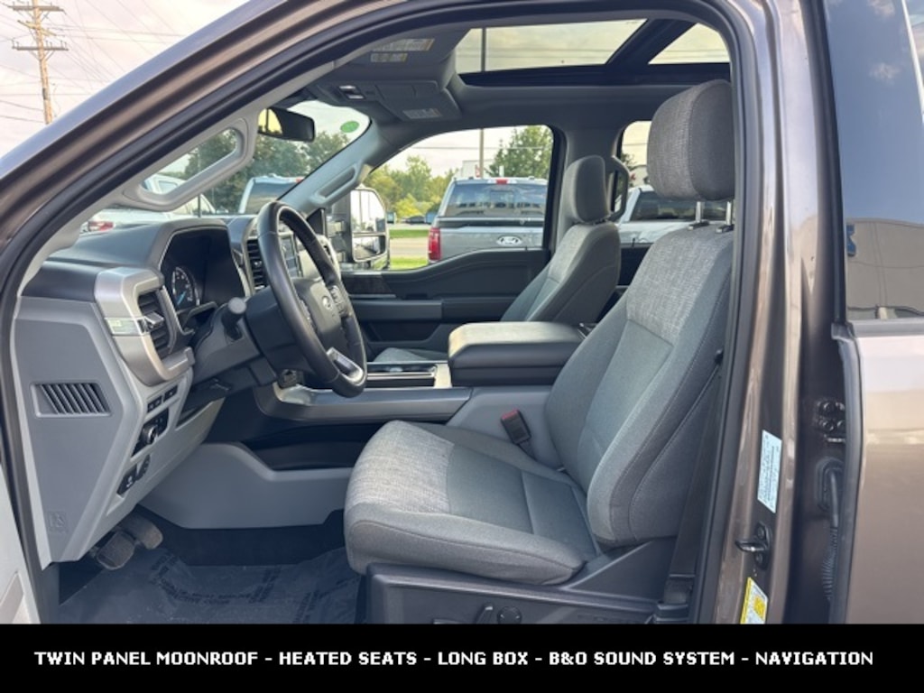 **INCREDIBLY CLEAN LOCAL LEASE RETURN**LONG BOX**MAX TRAILER TOW**TWIN PANEL MOONROOF**HEATED SEATS**12" TOUCHSCREEN WITH NAVIGATION**FX4 OFF ROAD PACKAGE WITH SKID PLATES**36 GALLON FUEL TANK**B&O SOUND SYSTEM**20" CHROME WHEELS**BLIS WITH CROSS TRAFFIC ALERT**FOUR WHEEL DRIVE**FULLY INSPECTED AND SERVICED**Stone Gray Metallic 2023 Ford F-150 XLT LONG BOX TWIN PANEL ROOF 4WD 10-Speed Automatic 3.5L V6 EcoBoost *MOONROOF, *NAVIGATION, *LOCAL TRADE, *FULLY SERVICED, *REMOTE START, *20" WHEELS, *REARVIEW CAMERA, *RUNNING BOARDS, *TRAILER TOW PACKAGE, *HEATED SEATS, 4WD, Navigation System.