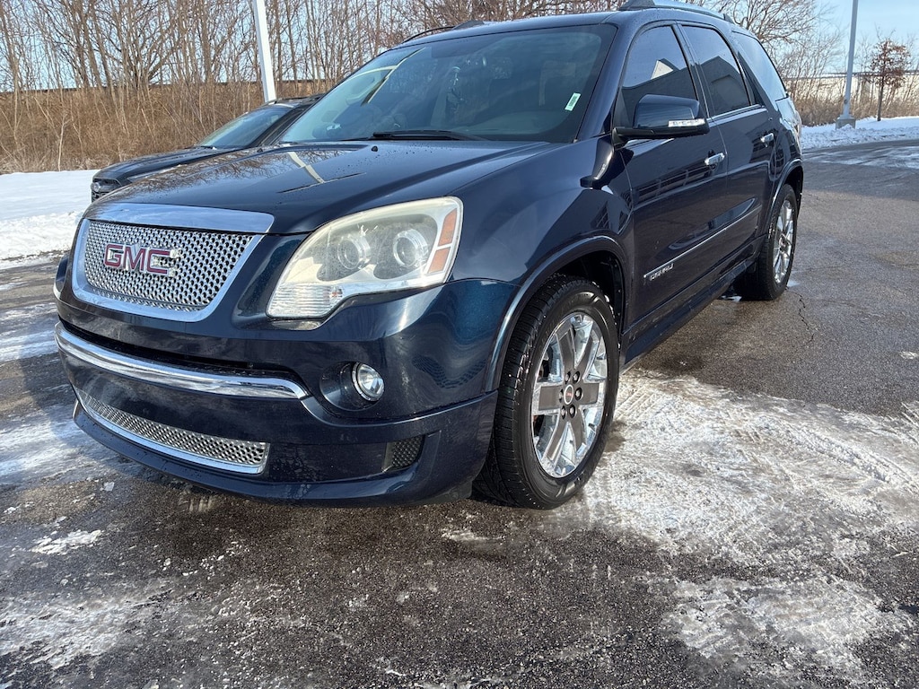 Recent Arrival! 2012 GMC Dark Blue Metallic AWD Acadia Denali 6-Speed Automatic Electronic with Overdrive Odometer is 47645 miles below market average! Denali Specific Acoustic Insulation Package, Technology Package (Head-Up Display, High-Intensity Discharge Projector Low Beam Headlamps, and Rear Cargo Area Audio System Controls), Trailering Equipment (Heavy-Duty Cooling System and Trailer Hitch), 10 Speakers, 2-Position Memory For Driver's Seat Adjuster, 20" Chrome-Clad Aluminum Wheels, 3.16 Axle Ratio, 3rd row seats: split-bench, 4-Way Power Passenger Seat, 4-Wheel Disc Brakes, 5-Gauge Instrumentation, 7-Passenger Seating (2-2-3 Seating Configuration), 8-Way Power Driver Seat, ABS brakes, Air Conditioning, Alloy wheels, AM/FM radio: SiriusXM, AM/FM Stereo w/CD Player/MP3 Playback, Auto-dimming door mirrors, Auto-dimming Rear-View mirror, Automatic temperature control, Bluetooth® For Phone, Body-Color Moldings w/Chrome Insert, Bodyside moldings, Bose Premium 10-Speaker Audio System, Brake assist, Bumpers: body-color, CD player, Compass, Delay-off headlights, Denali Specific Body-Color Rocker Molding, Denali Specific Double Dual Exhaust w/Chrome Tips, Denali Specific Front & Rear Body-Color Fascias, Denali Specific Illuminated Sill Plate, Digital Compass Display, Driver door bin, Driver vanity mirror, Dual front impact airbags, Dual front side impact airbags, Dual SkyScape 2-Panel Power Sunroof, Electronic Stability Control, Emergency communication system: OnStar Directions & Connections, Exterior Parking Camera Rear, Four wheel independent suspension, Front & Rear Body-Color Wheel Flares, Front anti-roll bar, Front Bucket Seats, Front Center Armrest w/Storage, Front dual zone A/C, Front fog lights, Front reading lights, Fully automatic headlights, Garage door transmitter, Genuine wood console insert, Genuine wood dashboard insert, Genuine wood door panel insert, Heads-Up Display, Heated & Cooled Front Seats, Heated door mirrors, Heated front seats, Heated Power-Adjustable Outside Mirrors, High-Intensity Discharge Headlights, Illuminated entry, Inside Rear-View Auto-Dimming Mirror, Integral Spotter Blind-Zone Mirrors, Leather Shift Knob, Leather steering wheel, Leather-Wrapped Steering Wheel w/Wood Trim, Low tire pressure warning, Memory seat, Occupant sensing airbag, Outside temperature display, Overhead airbag, Overhead console, Panic alarm, Passenger door bin, Passenger vanity mirror, Perforated Leather Seating Surfaces Seat Trim, Power door mirrors, Power driver seat, Power Liftgate, Power moonroof, Power passenger seat, Power Rear Liftgate Body, Power steering, Power windows, Power Windows w/Driver Express-Up & -Down, Premium Carpeted Front 2nd & 3rd Row Floor Mats, Radio data system, Rear air conditioning, Rear anti-roll bar, Rear audio controls, Rear Audio System Controls, Rear Park Assist, Rear reading lights, Rear window defroster, Rear window wiper, Reclining Bucket Seats, Remote keyless entry, Remote Vehicle Start, Ride & Handling Suspension, Roof rack: rails only, Security system, SIRIUSXM Satellite Radio, Speed control, Speed-sensing steering, Spoiler, Steering wheel mounted audio controls, Tachometer, Telescoping steering wheel, Tilt steering wheel, Traction control, Tri-Zone Automatic Climate Control, Trip computer, Turn signal indicator mirrors, Universal Home Remote, USB Port-Receptacle, Variable Effort Power Steering, Variably intermittent wipers, Ventilated front seats, and Voltmeter.