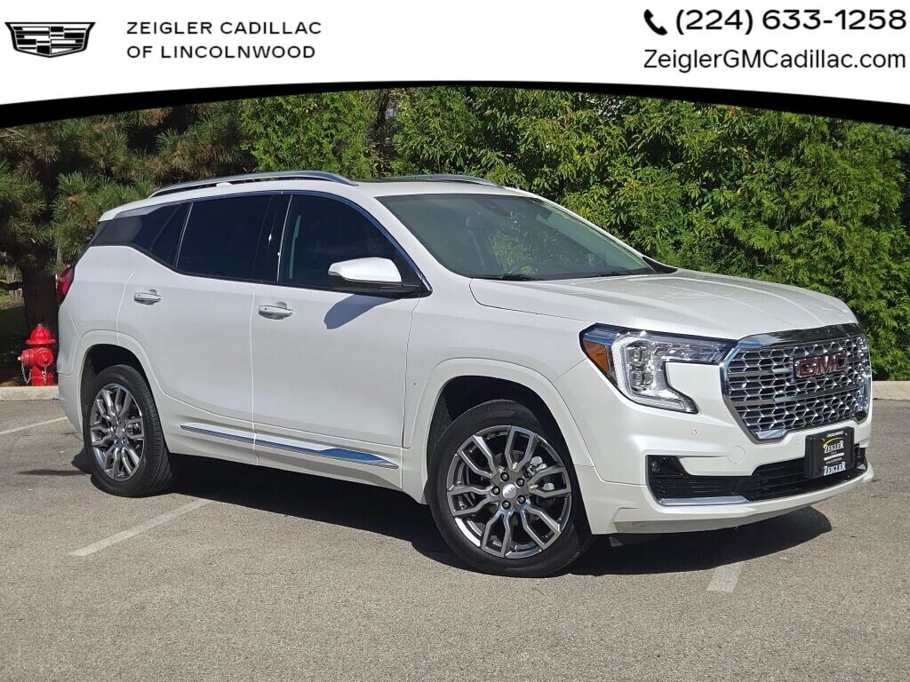 Available now at Zeigler Buick GMC of Lincolnwood, this 1-owner, clean Carfax, fresh lease return 2022 GMC Terrain Denali AWD stands out in White Frost Tricoat with a Jet Black leather interior. Combining refined Denali styling, premium comfort, and advanced driver-assist technologies, this luxury compact SUV is designed to impress every mile.
