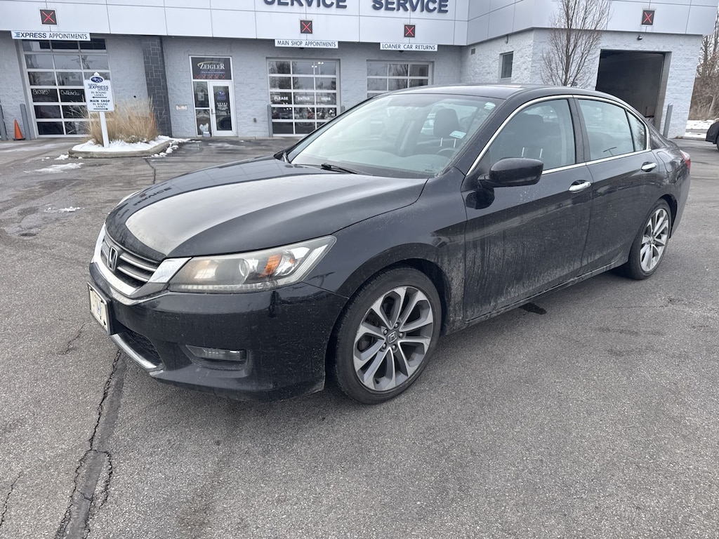 Recent Arrival! 2014 Honda FWD Accord Sport CVT Odometer is 662 miles below market average! 160-Watt AM/FM/CD Audio System, 18" Alloy Wheels, 4 Speakers, 4-Wheel Disc Brakes, ABS brakes, Air Conditioning, Alloy wheels, AM/FM radio, Automatic temperature control, Brake assist, Bumpers: body-color, CD player, Cloth Seat Trim, Delay-off headlights, Driver door bin, Driver vanity mirror, Dual front impact airbags, Dual front side impact airbags, Electronic Stability Control, Exterior Parking Camera Rear, Four wheel independent suspension, Front anti-roll bar, Front Bucket Seats, Front Center Armrest, Front dual zone A/C, Front fog lights, Front reading lights, Fully automatic headlights, Illuminated entry, Leather steering wheel, Low tire pressure warning, Occupant sensing airbag, Outside temperature display, Overhead airbag, Overhead console, Panic alarm, Passenger door bin, Passenger vanity mirror, Power door mirrors, Power driver seat, Power steering, Power windows, Radio data system, Rear anti-roll bar, Rear seat center armrest, Rear window defroster, Remote keyless entry, Security system, Speed control, Speed-sensing steering, Speed-Sensitive Wipers, Spoiler, Steering wheel mounted audio controls, Tachometer, Telescoping steering wheel, Tilt steering wheel, Traction control, Trip computer, and Variably intermittent wipers.