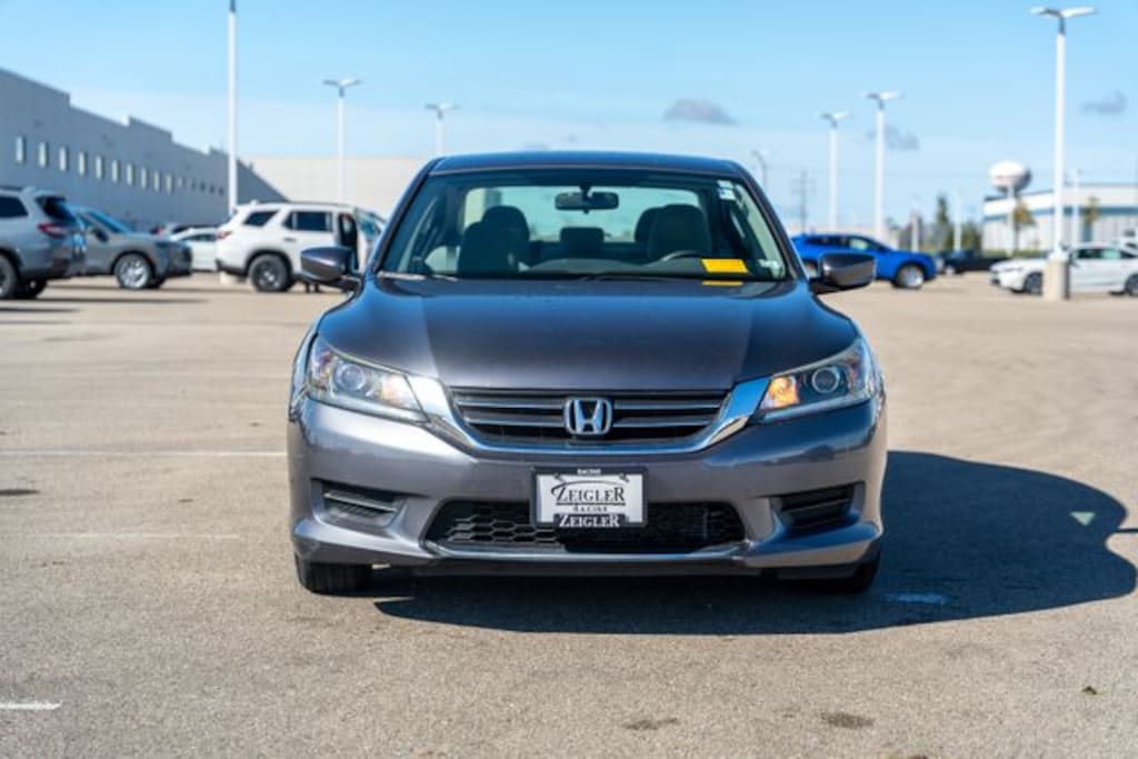 2014 Modern Steel Metallic Honda Accord LX âFOR A GREAT EXPERIENCEâ visit Zeigler Honda of Racine, because we take pride in treating our customers like family, ensuring that your experience is one that you will never forget. We have 4.7 Google Rating! Making our store the highest rated Honda dealer in the state of Wisconsin! Every vehicle has been through a multi-point safety inspection and professionally cleaned and disinfected for your protection. With a convenient location off of I-94 at exit 333; we are proud to serve customers in Racine, Sturtevant, Caledonia, Mount Pleasant, Union Grove, Burlington, Kenosha, Bristol, Waukesha, Milwaukee, Oak Creek and many other surrounding areas! Our Sales Consultants are Factory Certified and have earned some of the highest customer satisfaction ratings in Southeast Wisconsin. We specialize in New Honda, Certified Pre-Owned Honda, as well as many other makes and models that fit all budgets and prices. We offer affordable purchase and leasing options. If you are traveling from Waukegan, Gurnee, Naperville, Pleasant Prairie, Antioch, Fox Lake, or even Madison, feel free to browse our entire inventory of new or pre-owned vehicles right from your home: zeiglerhondaracine.com. Even if we don't have the exact vehicle in our inventory, we will gladly bring one in for you and still guarantee the lowest price possible. A little further than a hop, skip or a jump? We can arrange shipping & delivery! Price may exclude certification, added accessories and/or packages, certain taxes, $399 doc fee, charges and/or fees. Dealer is not responsible for pricing errors, although we strive to be accurate, we are human. The value of used vehicles varies with mileage, usage and condition. Book values should be considered estimates only. Some of our used vehicles may be subject to unrepaired safety recalls. Check for a vehicle's unrepaired recalls by VIN at http://vinrcl.safercar.gov/vin/. See dealer for complete details.