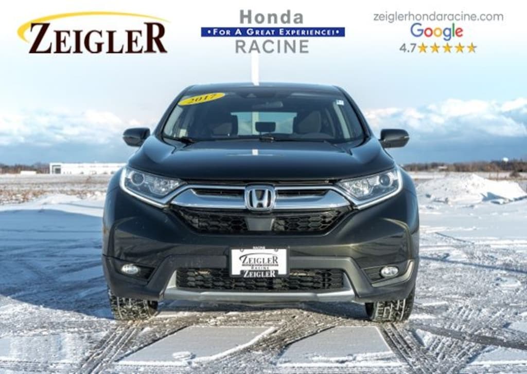 2017 Dark Olive Metallic Honda CR-V EX âFOR A GREAT EXPERIENCEâ visit Zeigler Honda of Racine, because we take pride in treating our customers like family, ensuring that your experience is one that you will never forget. We have 4.7 Google Rating! Making our store the highest rated Honda dealer in the state of Wisconsin! Every vehicle has been through a multi-point safety inspection and professionally cleaned and disinfected for your protection. With a convenient location off of I-94 at exit 333; we are proud to serve customers in Racine, Sturtevant, Caledonia, Mount Pleasant, Union Grove, Burlington, Kenosha, Bristol, Waukesha, Milwaukee, Oak Creek and many other surrounding areas! Our Sales Consultants are Factory Certified and have earned some of the highest customer satisfaction ratings in Southeast Wisconsin. We specialize in New Honda, Certified Pre-Owned Honda, as well as many other makes and models that fit all budgets and prices. We offer affordable purchase and leasing options. If you are traveling from Waukegan, Gurnee, Naperville, Pleasant Prairie, Antioch, Fox Lake, or even Madison, feel free to browse our entire inventory of new or pre-owned vehicles right from your home: zeiglerhondaracine.com. Even if we don't have the exact vehicle in our inventory, we will gladly bring one in for you and still guarantee the lowest price possible. A little further than a hop, skip or a jump? We can arrange shipping & delivery! Price may exclude certification, added accessories and/or packages, certain taxes, $399 doc fee, charges and/or fees. Dealer is not responsible for pricing errors, although we strive to be accurate, we are human. The value of used vehicles varies with mileage, usage and condition. Book values should be considered estimates only. Some of our used vehicles may be subject to unrepaired safety recalls. Check for a vehicle's unrepaired recalls by VIN at http://vinrcl.safercar.gov/vin/. See dealer for complete details.