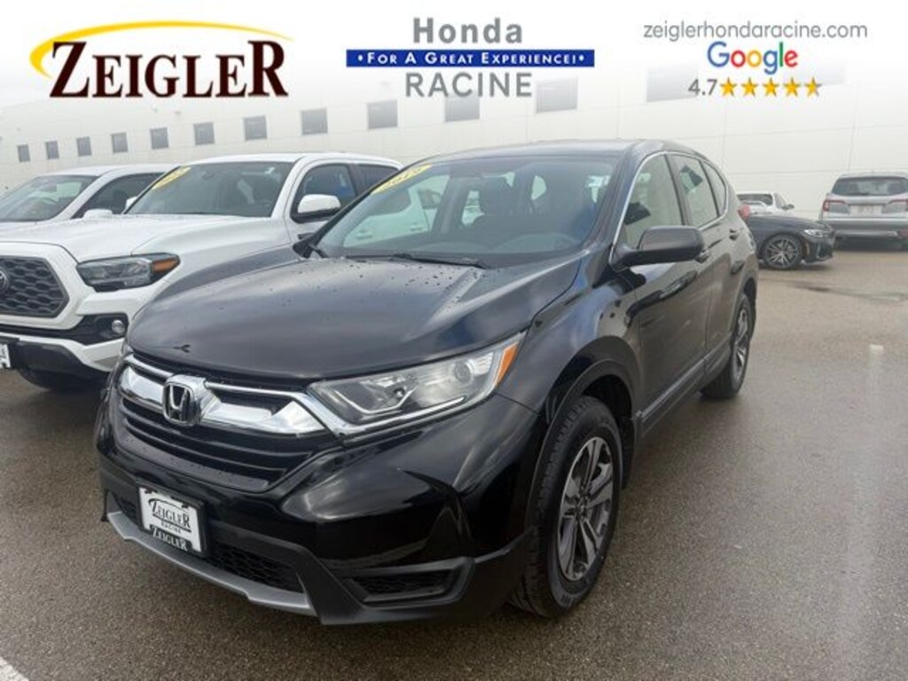 2019 Crystal Black Pearl Honda CR-V LX âFOR A GREAT EXPERIENCEâ visit Zeigler Honda of Racine, because we take pride in treating our customers like family, ensuring that your experience is one that you will never forget. We have 4.7 Google Rating! Making our store the highest rated Honda dealer in the state of Wisconsin! Every vehicle has been through a multi-point safety inspection and professionally cleaned and disinfected for your protection. With a convenient location off of I-94 at exit 333; we are proud to serve customers in Racine, Sturtevant, Caledonia, Mount Pleasant, Union Grove, Burlington, Kenosha, Bristol, Waukesha, Milwaukee, Oak Creek and many other surrounding areas! Our Sales Consultants are Factory Certified and have earned some of the highest customer satisfaction ratings in Southeast Wisconsin. We specialize in New Honda, Certified Pre-Owned Honda, as well as many other makes and models that fit all budgets and prices. We offer affordable purchase and leasing options. If you are traveling from Waukegan, Gurnee, Naperville, Pleasant Prairie, Antioch, Fox Lake, or even Madison, feel free to browse our entire inventory of new or pre-owned vehicles right from your home: zeiglerhondaracine.com. Even if we don't have the exact vehicle in our inventory, we will gladly bring one in for you and still guarantee the lowest price possible. A little further than a hop, skip or a jump? We can arrange shipping & delivery! Price may exclude certification, added accessories and/or packages, certain taxes, $399 doc fee, charges and/or fees. Dealer is not responsible for pricing errors, although we strive to be accurate, we are human. The value of used vehicles varies with mileage, usage and condition. Book values should be considered estimates only. Some of our used vehicles may be subject to unrepaired safety recalls. Check for a vehicle's unrepaired recalls by VIN at http://vinrcl.safercar.gov/vin/. See dealer for complete details.