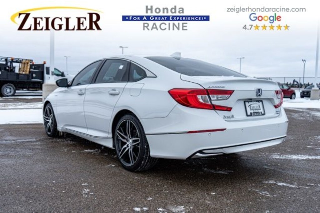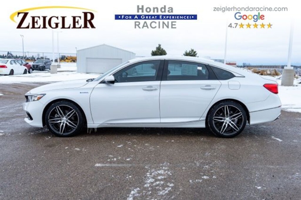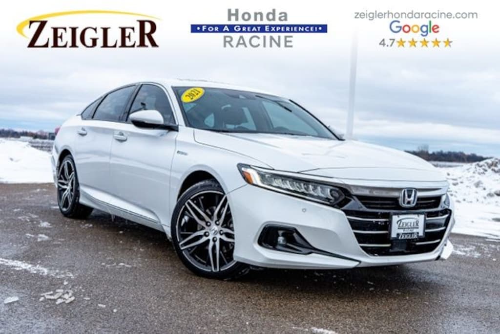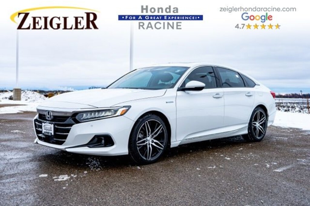 2021 Platinum White Pearl Honda Accord Hybrid Touring âFOR A GREAT EXPERIENCEâ visit Zeigler Honda of Racine, because we take pride in treating our customers like family, ensuring that your experience is one that you will never forget. We have 4.7 Google Rating! Making our store the highest rated Honda dealer in the state of Wisconsin! Every vehicle has been through a multi-point safety inspection and professionally cleaned and disinfected for your protection. With a convenient location off of I-94 at exit 333; we are proud to serve customers in Racine, Sturtevant, Caledonia, Mount Pleasant, Union Grove, Burlington, Kenosha, Bristol, Waukesha, Milwaukee, Oak Creek and many other surrounding areas! Our Sales Consultants are Factory Certified and have earned some of the highest customer satisfaction ratings in Southeast Wisconsin. We specialize in New Honda, Certified Pre-Owned Honda, as well as many other makes and models that fit all budgets and prices. We offer affordable purchase and leasing options. If you are traveling from Waukegan, Gurnee, Naperville, Pleasant Prairie, Antioch, Fox Lake, or even Madison, feel free to browse our entire inventory of new or pre-owned vehicles right from your home: zeiglerhondaracine.com. Even if we don't have the exact vehicle in our inventory, we will gladly bring one in for you and still guarantee the lowest price possible. A little further than a hop, skip or a jump? We can arrange shipping & delivery! Price may exclude certification, added accessories and/or packages, certain taxes, $399 doc fee, charges and/or fees. Dealer is not responsible for pricing errors, although we strive to be accurate, we are human. The value of used vehicles varies with mileage, usage and condition. Book values should be considered estimates only. Some of our used vehicles may be subject to unrepaired safety recalls. Check for a vehicle's unrepaired recalls by VIN at http://vinrcl.safercar.gov/vin/. See dealer for complete details.