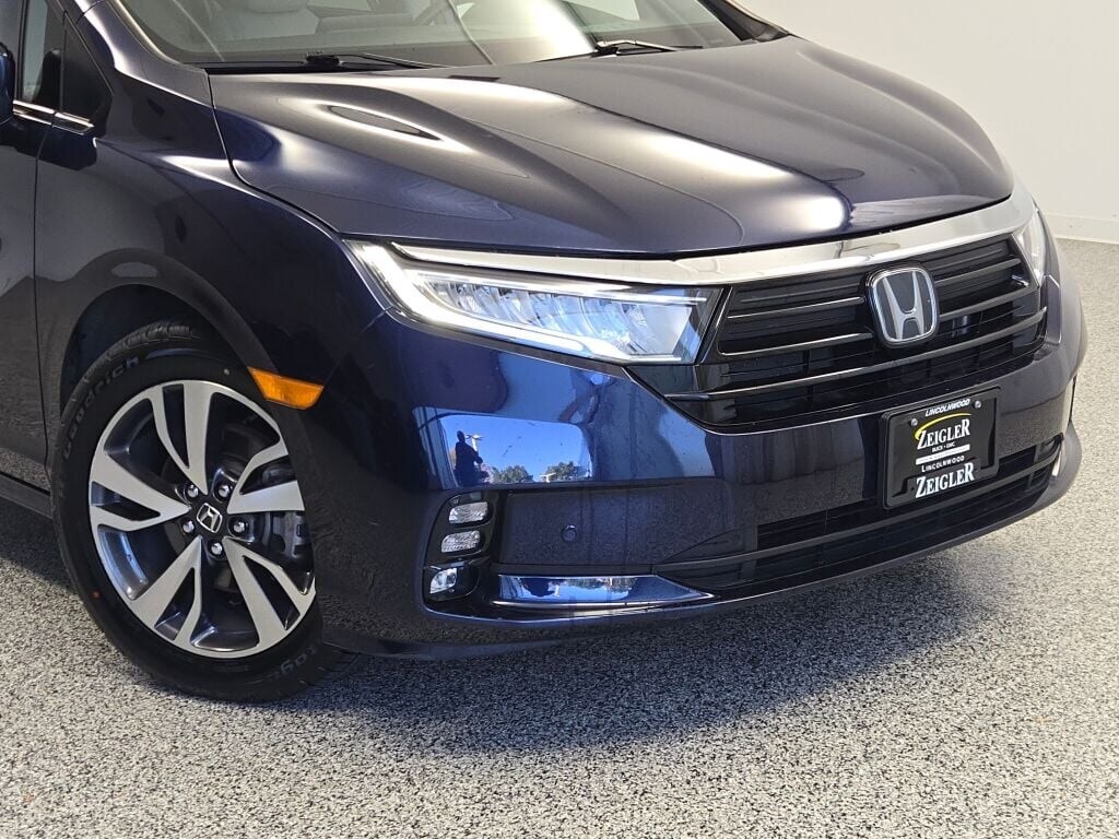 Available now at Zeigler Cadillac of Lincolnwood, this 2021 Honda Odyssey Touring in Obsidian Blue Pearl with a Gray leather-trimmed interior delivers premium family convenience, modern technology, and Hondas trusted reliability in one versatile minivan package.