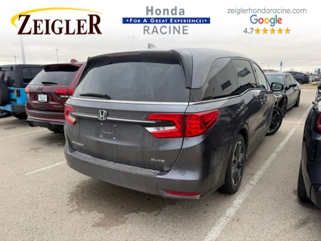 2023 Modern Steel Metallic Honda Odyssey Elite âFOR A GREAT EXPERIENCEâ visit Zeigler Honda of Racine, because we take pride in treating our customers like family, ensuring that your experience is one that you will never forget. We have 4.7 Google Rating! Making our store the highest rated Honda dealer in the state of Wisconsin! Every vehicle has been through a multi-point safety inspection and professionally cleaned and disinfected for your protection. With a convenient location off of I-94 at exit 333; we are proud to serve customers in Racine, Sturtevant, Caledonia, Mount Pleasant, Union Grove, Burlington, Kenosha, Bristol, Waukesha, Milwaukee, Oak Creek and many other surrounding areas! Our Sales Consultants are Factory Certified and have earned some of the highest customer satisfaction ratings in Southeast Wisconsin. We specialize in New Honda, Certified Pre-Owned Honda, as well as many other makes and models that fit all budgets and prices. We offer affordable purchase and leasing options. If you are traveling from Waukegan, Gurnee, Naperville, Pleasant Prairie, Antioch, Fox Lake, or even Madison, feel free to browse our entire inventory of new or pre-owned vehicles right from your home: zeiglerhondaracine.com. Even if we don't have the exact vehicle in our inventory, we will gladly bring one in for you and still guarantee the lowest price possible. A little further than a hop, skip or a jump? We can arrange shipping & delivery! Price may exclude certification, added accessories and/or packages, certain taxes, $399 doc fee, charges and/or fees. Dealer is not responsible for pricing errors, although we strive to be accurate, we are human. The value of used vehicles varies with mileage, usage and condition. Book values should be considered estimates only. Some of our used vehicles may be subject to unrepaired safety recalls. Check for a vehicle's unrepaired recalls by VIN at http://vinrcl.safercar.gov/vin/. See dealer for complete details.