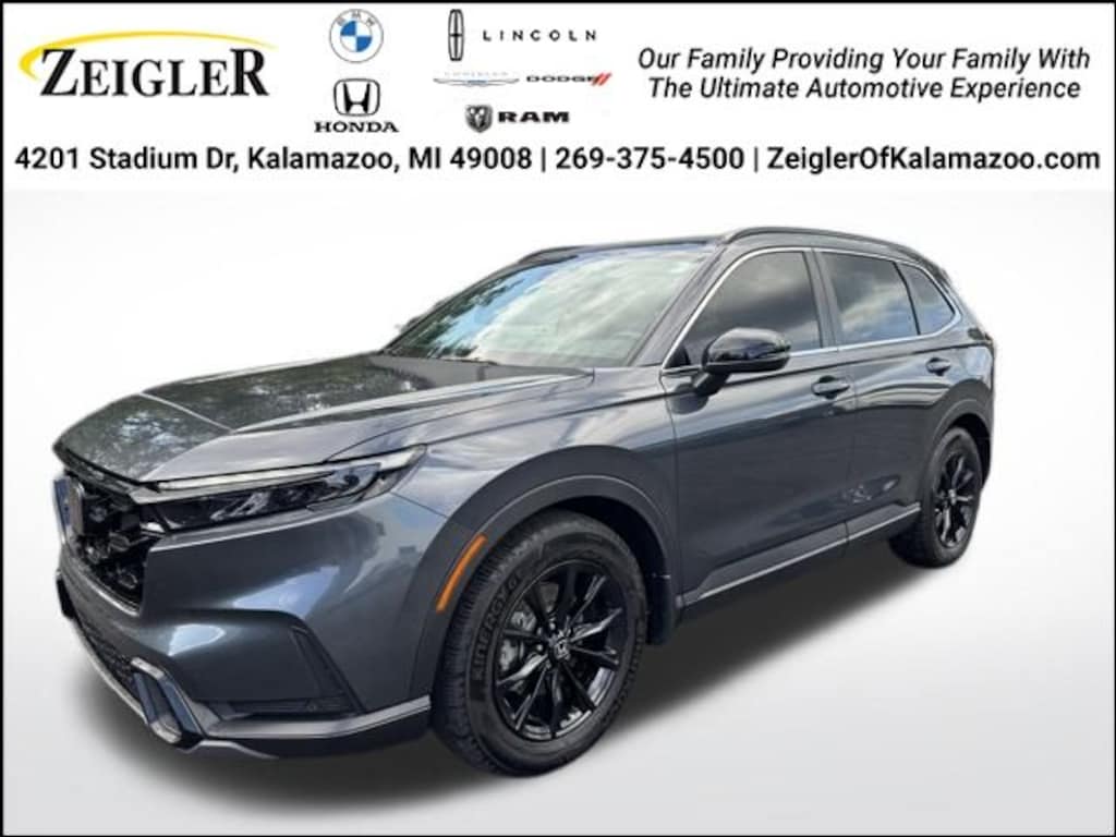 CR-V Hybrid Sport-L, 4D Sport Utility, 2.0L I4 DOHC 16V, eCVT, FWD, Meteorite Gray Metallic, Black w/Leather Seat Trim.