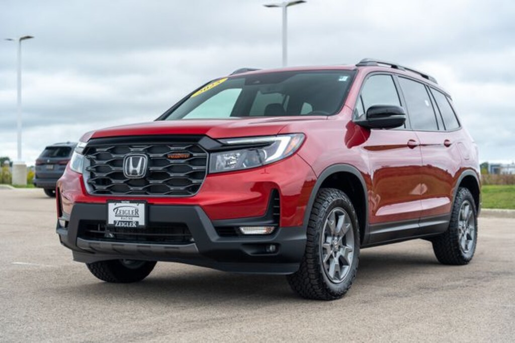 2025 Radiant Red Metallic II Honda Passport TrailSport âFOR A GREAT EXPERIENCEâ visit Zeigler Honda of Racine, because we take pride in treating our customers like family, ensuring that your experience is one that you will never forget. We have 4.7 Google Rating! Making our store the highest rated Honda dealer in the state of Wisconsin! Every vehicle has been through a multi-point safety inspection and professionally cleaned and disinfected for your protection. With a convenient location off of I-94 at exit 333; we are proud to serve customers in Racine, Sturtevant, Caledonia, Mount Pleasant, Union Grove, Burlington, Kenosha, Bristol, Waukesha, Milwaukee, Oak Creek and many other surrounding areas! Our Sales Consultants are Factory Certified and have earned some of the highest customer satisfaction ratings in Southeast Wisconsin. We specialize in New Honda, Certified Pre-Owned Honda, as well as many other makes and models that fit all budgets and prices. We offer affordable purchase and leasing options. If you are traveling from Waukegan, Gurnee, Naperville, Pleasant Prairie, Antioch, Fox Lake, or even Madison, feel free to browse our entire inventory of new or pre-owned vehicles right from your home: zeiglerhondaracine.com. Even if we don't have the exact vehicle in our inventory, we will gladly bring one in for you and still guarantee the lowest price possible. A little further than a hop, skip or a jump? We can arrange shipping & delivery! Price may exclude certification, added accessories and/or packages, certain taxes, $399 doc fee, charges and/or fees. Dealer is not responsible for pricing errors, although we strive to be accurate, we are human. The value of used vehicles varies with mileage, usage and condition. Book values should be consider