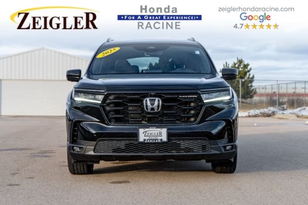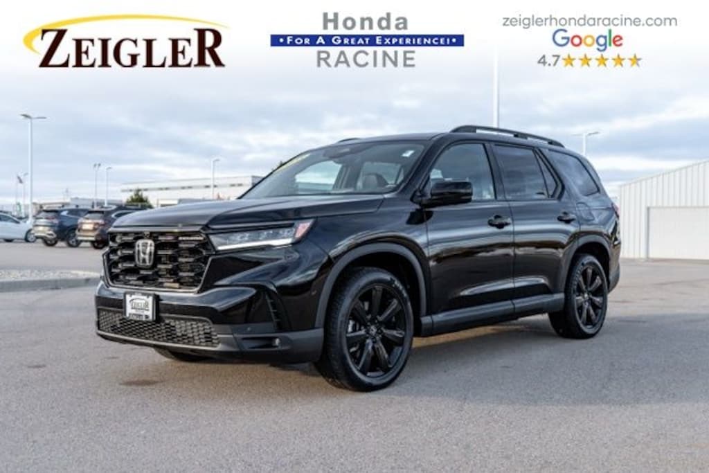 2025 Crystal Black Pearl Honda Pilot Black Edition âFOR A GREAT EXPERIENCEâ visit Zeigler Honda of Racine, because we take pride in treating our customers like family, ensuring that your experience is one that you will never forget. We have 4.7 Google Rating! Making our store the highest rated Honda dealer in the state of Wisconsin! Every vehicle has been through a multi-point safety inspection and professionally cleaned and disinfected for your protection. With a convenient location off of I-94 at exit 333; we are proud to serve customers in Racine, Sturtevant, Caledonia, Mount Pleasant, Union Grove, Burlington, Kenosha, Bristol, Waukesha, Milwaukee, Oak Creek and many other surrounding areas! Our Sales Consultants are Factory Certified and have earned some of the highest customer satisfaction ratings in Southeast Wisconsin. We specialize in New Honda, Certified Pre-Owned Honda, as well as many other makes and models that fit all budgets and prices. We offer affordable purchase and leasing options. If you are traveling from Waukegan, Gurnee, Naperville, Pleasant Prairie, Antioch, Fox Lake, or even Madison, feel free to browse our entire inventory of new or pre-owned vehicles right from your home: zeiglerhondaracine.com. Even if we don't have the exact vehicle in our inventory, we will gladly bring one in for you and still guarantee the lowest price possible. A little further than a hop, skip or a jump? We can arrange shipping & delivery! Price may exclude certification, added accessories and/or packages, certain taxes, $399 doc fee, charges and/or fees. Dealer is not responsible for pricing errors, althoug