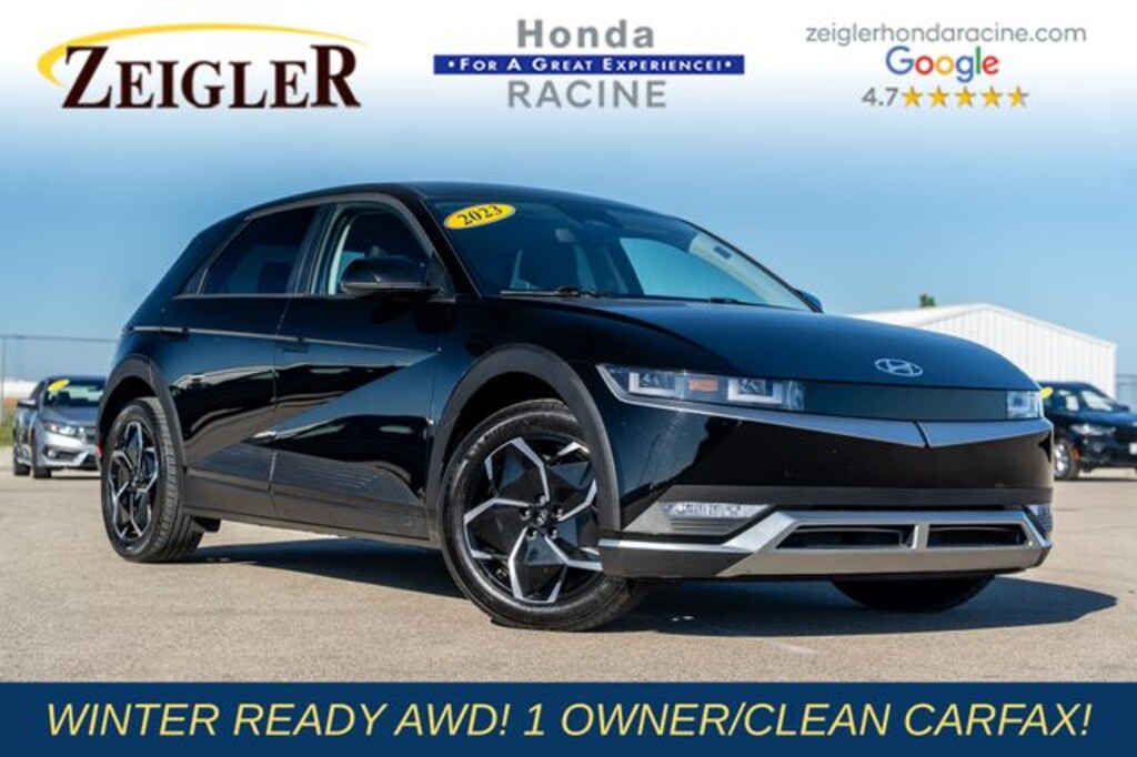 2023 Abyss Black Hyundai IONIQ 5 SE âFOR A GREAT EXPERIENCEâ visit Zeigler Honda of Racine, because we take pride in treating our customers like family, ensuring that your experience is one that you will never forget. We have 4.7 Google Rating! Making our store the highest rated Honda dealer in the state of Wisconsin! Every vehicle has been through a multi-point safety inspection and professionally cleaned and disinfected for your protection. With a convenient location off of I-94 at exit 333; we are proud to serve customers in Racine, Sturtevant, Caledonia, Mount Pleasant, Union Grove, Burlington, Kenosha, Bristol, Waukesha, Milwaukee, Oak Creek and many other surrounding areas! Our Sales Consultants are Factory Certified and have earned some of the highest customer satisfaction ratings in Southeast Wisconsin. We specialize in New Honda, Certified Pre-Owned Honda, as well as many other makes and models that fit all budgets and prices. We offer affordable purchase and leasing options. If you are traveling from Waukegan, Gurnee, Naperville, Pleasant Prairie, Antioch, Fox Lake, or even Madison, feel free to browse our entire inventory of new or pre-owned vehicles right from your home: zeiglerhondaracine.com. Even if we don't have the exact vehicle in our inventory, we will gladly bring one in for you and still guarantee the lowest price possible. A little further than a hop, skip or a jump? We can arrange shipping & delivery! Price may exclude certification, added accessories and/or packages, certain taxes, $399 doc fee, charges and/or fees. Dealer is not responsible for pricing errors, although we strive to be accurate, we are human. The value of used vehicles varies with mileage, usage and condition. Book values should be considered estimates only. Some of our used vehicles may be subject to unrepaired safety recalls. Check for a vehicle's unrepaired recalls by VIN at http://vinrcl.safercar.gov/vin/. See dealer for complete details.