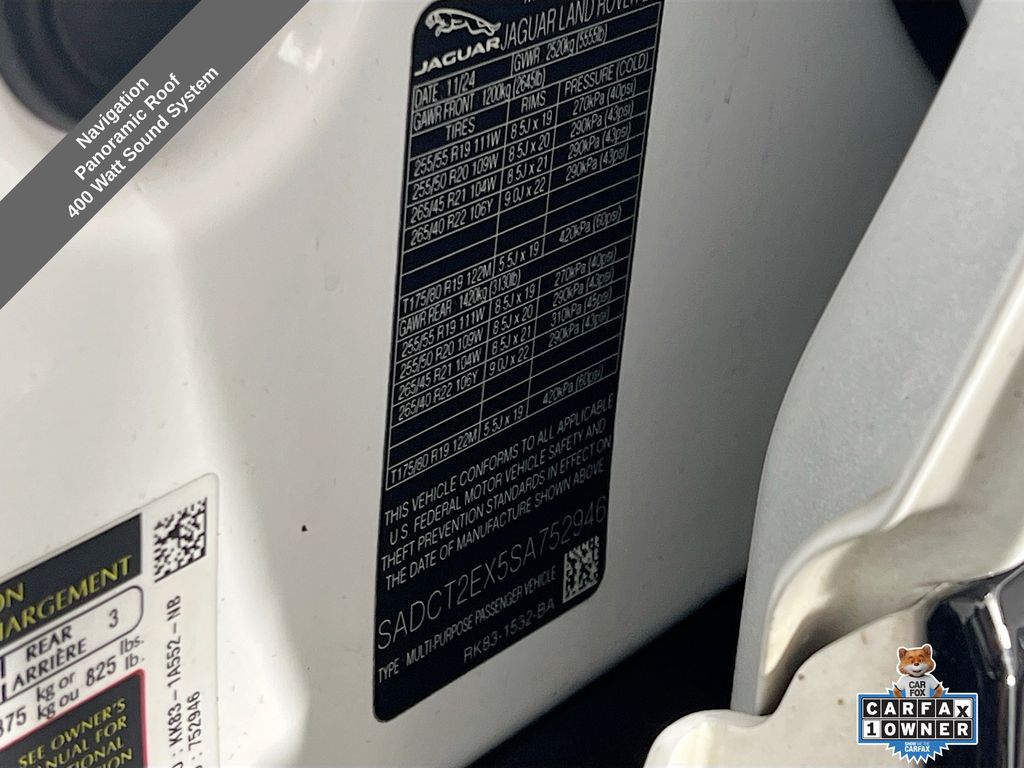 One of the least expensive 2025's you will find! Blowout Pricing! Hurry, we cannot replace this car once it is sold. Apple CarPlay/Android Auto, Heated front seats, Heated steering wheel, Illuminated entry, Navigation system: Pivi Pro (Connected Navigation), Panic alarm, Power Liftgate, Power moonroof, Radio: Meridian 400W Sound System, Security system, Spoiler, Wheels: 19" Diamond Turned (Style 5103). 2025 Jaguar F-PACE P250 R-Dynamic S Ostuni Pearl White Metallic.