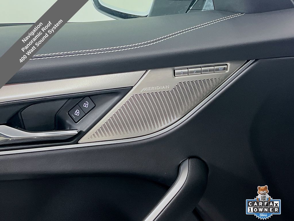 The cockpit features an 11.4-inch curved glass touchscreen running the Pivi Pro infotainment system, which supports wireless Apple CarPlay and Android Auto. A 12.3-inch interactive driver display provides customizable views of navigation. Standard tech also includes a wireless device charger, a 12-speaker Meridian sound system, and a heated steering wheel.