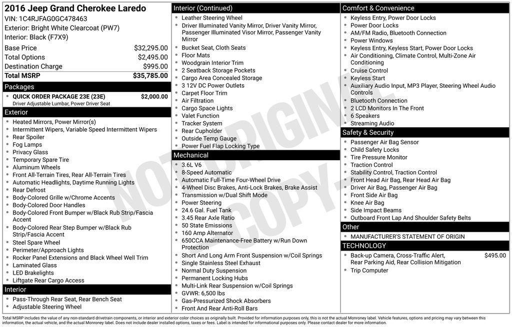 Discover the perfect blend of style, capability, and convenience in this 2016 Jeep Grand Cherokee Laredo. With its sleek white exterior and powerful 3.6L V6 engine, this SUV is ready to take on any adventure.