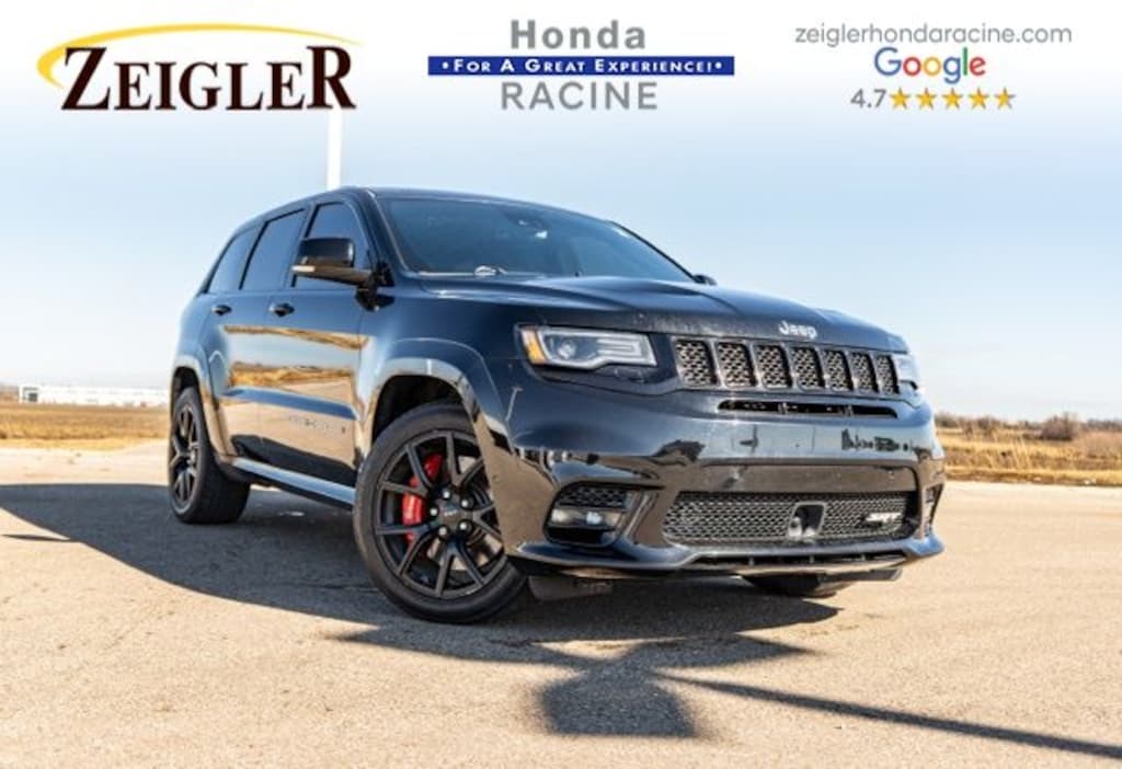 2017 Diamond Black Crystal Pearlcoat Jeep Grand Cherokee SRT âFOR A GREAT EXPERIENCEâ visit Zeigler Honda of Racine, because we take pride in treating our customers like family, ensuring that your experience is one that you will never forget. We have 4.7 Google Rating! Making our store the highest rated Honda dealer in the state of Wisconsin! Every vehicle has been through a multi-point safety inspection and professionally cleaned and disinfected for your protection. With a convenient location off of I-94 at exit 333; we are proud to serve customers in Racine, Sturtevant, Caledonia, Mount Pleasant, Union Grove, Burlington, Kenosha, Bristol, Waukesha, Milwaukee, Oak Creek and many other surrounding areas! Our Sales Consultants are Factory Certified and have earned some of the highest customer satisfaction ratings in Southeast Wisconsin. We specialize in New Honda, Certified Pre-Owned Honda, as well as many other makes and models that fit all budgets and prices. We offer affordable purchase and leasing options. If you are traveling from Waukegan, Gurnee, Naperville, Pleasant Prairie, Antioch, Fox Lake, or even Madison, feel free to browse our entire inventory of new or pre-owned vehicles right from your home: zeiglerhondaracine.com. Even if we don't have the exact vehicle in our inventory, we will gladly bring one in for you and still guarantee the lowest price possible. A little further than a hop, skip or a jump? We can arrange shipping & delivery! Price may exclude certification, added accessories and/or packages, certain taxes, $399 doc fee, charges and/or fees. Dealer is not responsible for pricing errors, although we strive to be accurate, we