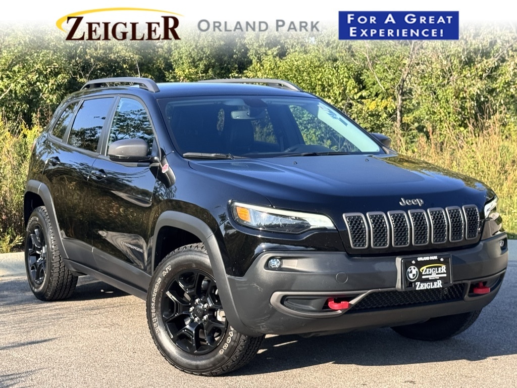2019 Jeep Cherokee Trailhawk LOCAL TRADE, ACTIVE BLIND SPOT DETECTION, HD RADIO, FRONT VENTILATED SEATS, HEATED FRONT SEATS, HEATED STEERING WHEEL, NAVIGATION, REAR CAMERA, REMOTE ENGINE START, 4-Wheel Disc Brakes, 6 Speakers, 8.4" Touchscreen Display, APPLE CAR PLAY, Auto-Dimming Rear-View Mirror, AutoStick Automatic Transmission, Auxiliary Transmission Oil Cooler, Delay-off headlights, Dual front side impact airbags, Electronic Stability Control, Exterior Mirrors Courtesy Lamps, Exterior Mirrors w/Memory, Four wheel independent suspension, GPS Antenna Input, Hands-Free Power Liftgate, Heated door mirrors, Heated Front Seats, Heated Steering Wheel, Hill Descent Control, Outside temperature display, Power door mirrors, Power Driver/Passenger 4-Way Lumbar Adjust, Power Front Driver/Passenger Seats, Premium Alpine Speaker System, Premium Leather Trimmed Bucket Seats, Quick Order Package 27L Trailhawk Elite, Radio/Driver Seat/Exterior Mirrors Memory, Rear window wiper, Remote Start System, Security Alarm, Speed control, Tonneau Cover, Turn signal indicator mirrors, Universal Garage Door Opener, Ventilated Front Seats, Windshield Wiper De-Icer. Diamond Black Crystal Pearlcoat 9-Speed 948TE Automatic 4WD 3.2L V6